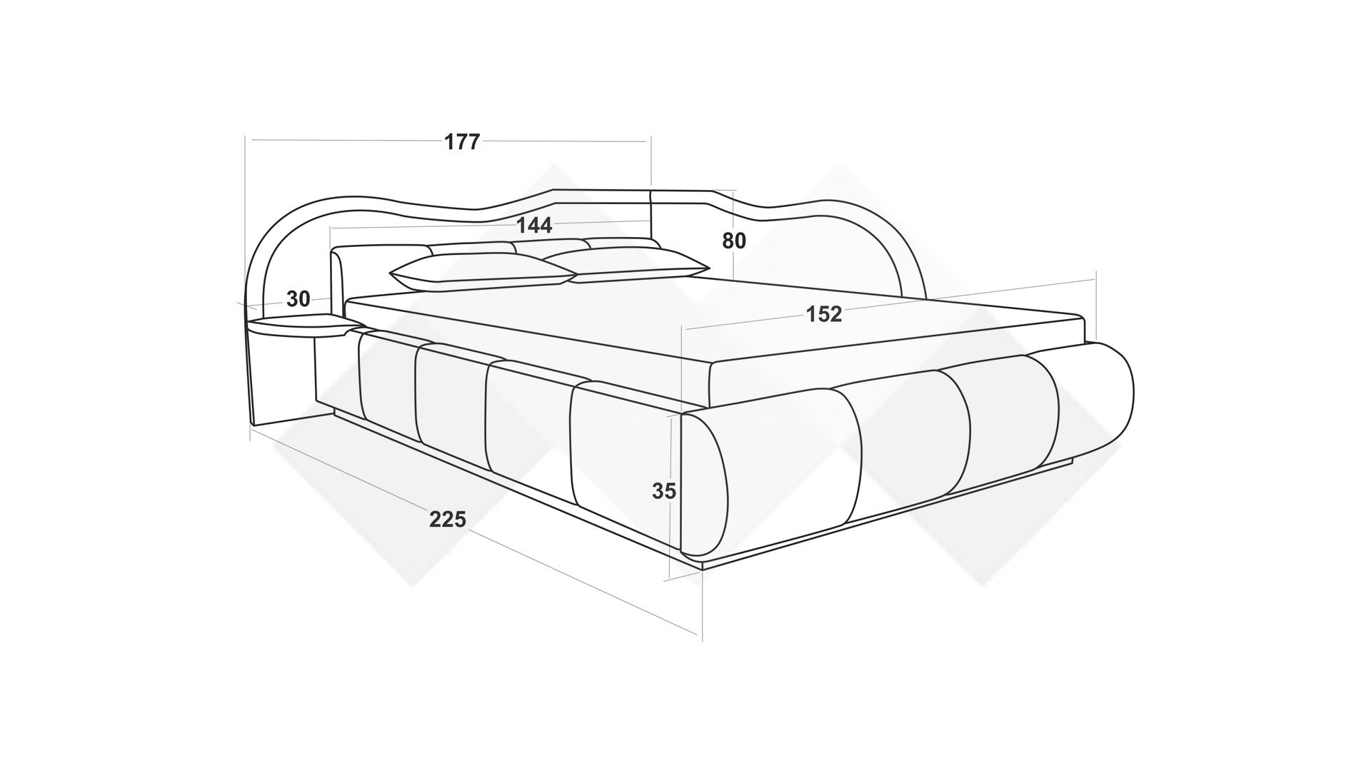 Леглото е с меки форми и елегантен дизайн. Подходящо е за матрак 140/200 см. Под матрака се открива широко пространство, готово да побере всички възглавници и завивки, на които все не намираш място. Така не се налага да закупуваш допълнителни шкафове у дома и пестиш пространство и пари.