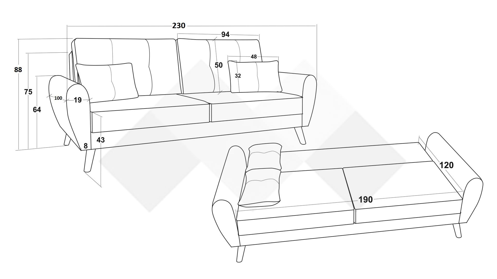 Функцията сън с площ 190 см дължина и 120 см ширина се активира чрез клик клак механизъм, осигуряващ лесно и бързо преобразуване в легло при необходимост.