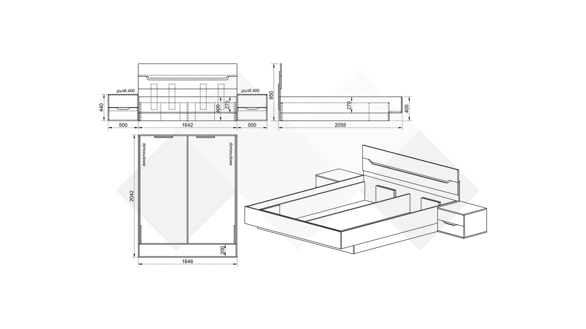 ✓ 2 нощни шкафчета ✓ семпъл дизайн ✓ повдигащ механизъм ✓ механизъм за плавно затваряне ✓ качествена изработка ✓ 16 мм ПДЧ и 18 мм МДФ