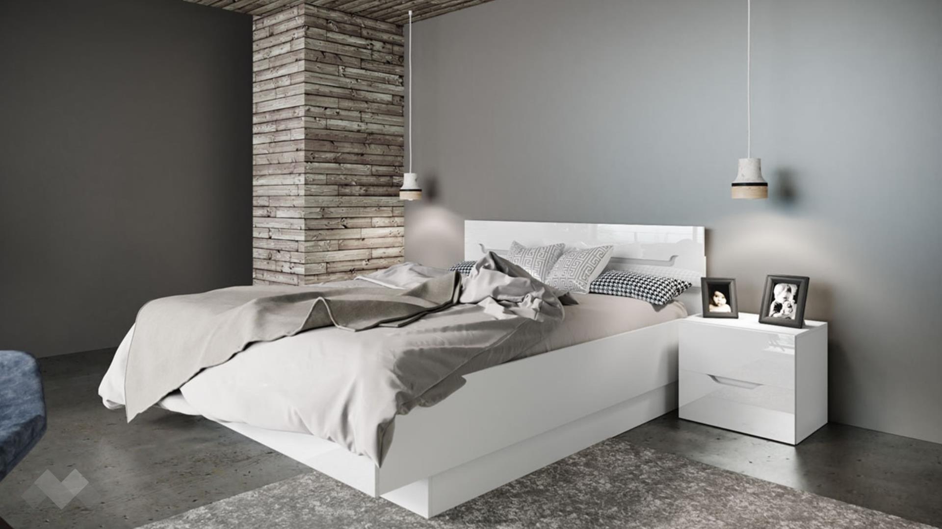 Спалня с нощни шкафчета 160/200Ницабяло гладко с бяло гланц с повдигащ механизъм