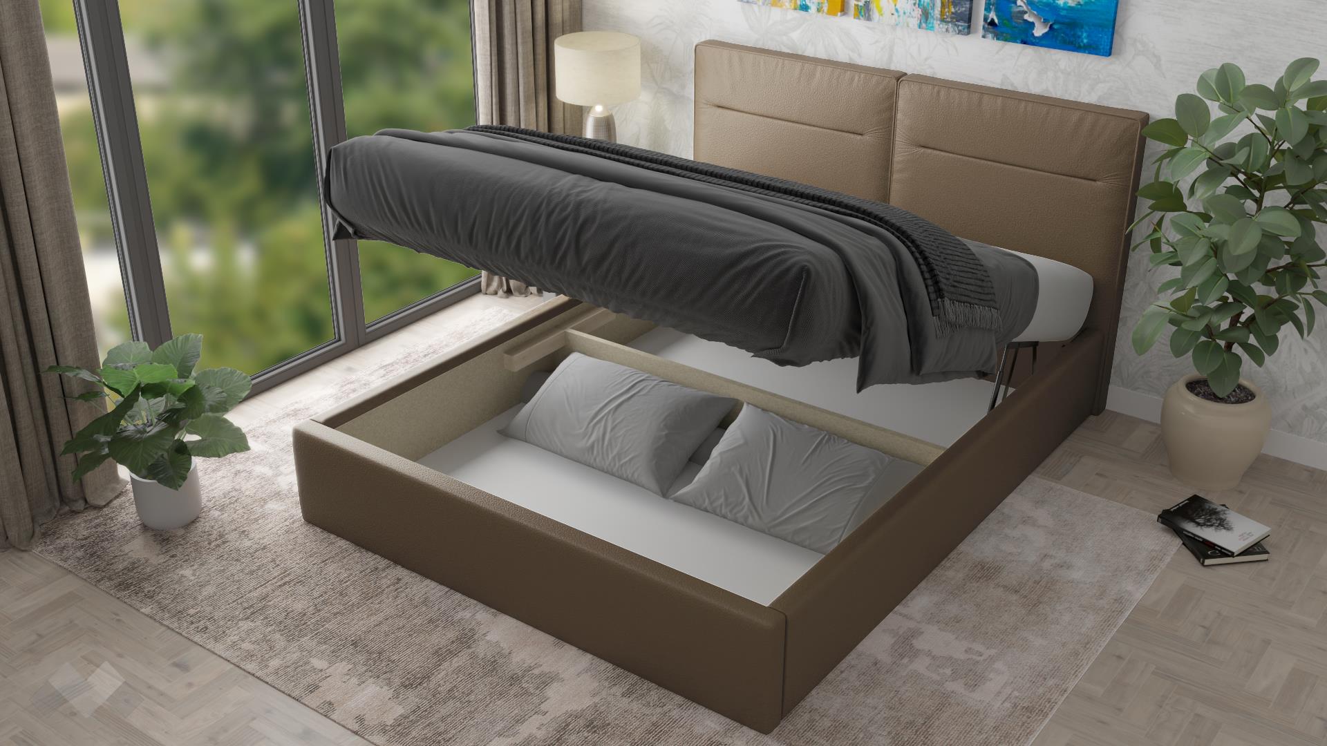 Спалнята ще ти осигури необходимото пространство за спокоен и комфортен сън. Тя е подходяща за матрак с размер 160/200 см. Таблата е с оптимална височина, мека и удобна за облягане при четене на книга или гледане на телевизия. Благодарение на включения повдигащ механизъм, в пространството под матрака можеш да съхраняваш завивки, възглавници, спално бельо или дрехи. Това е безценно предимство при по-малките жилища, където всеки сантиметър е от значение. Допълнителният делител на подматрачното пространство прави организацията на вещите още по-лесна.