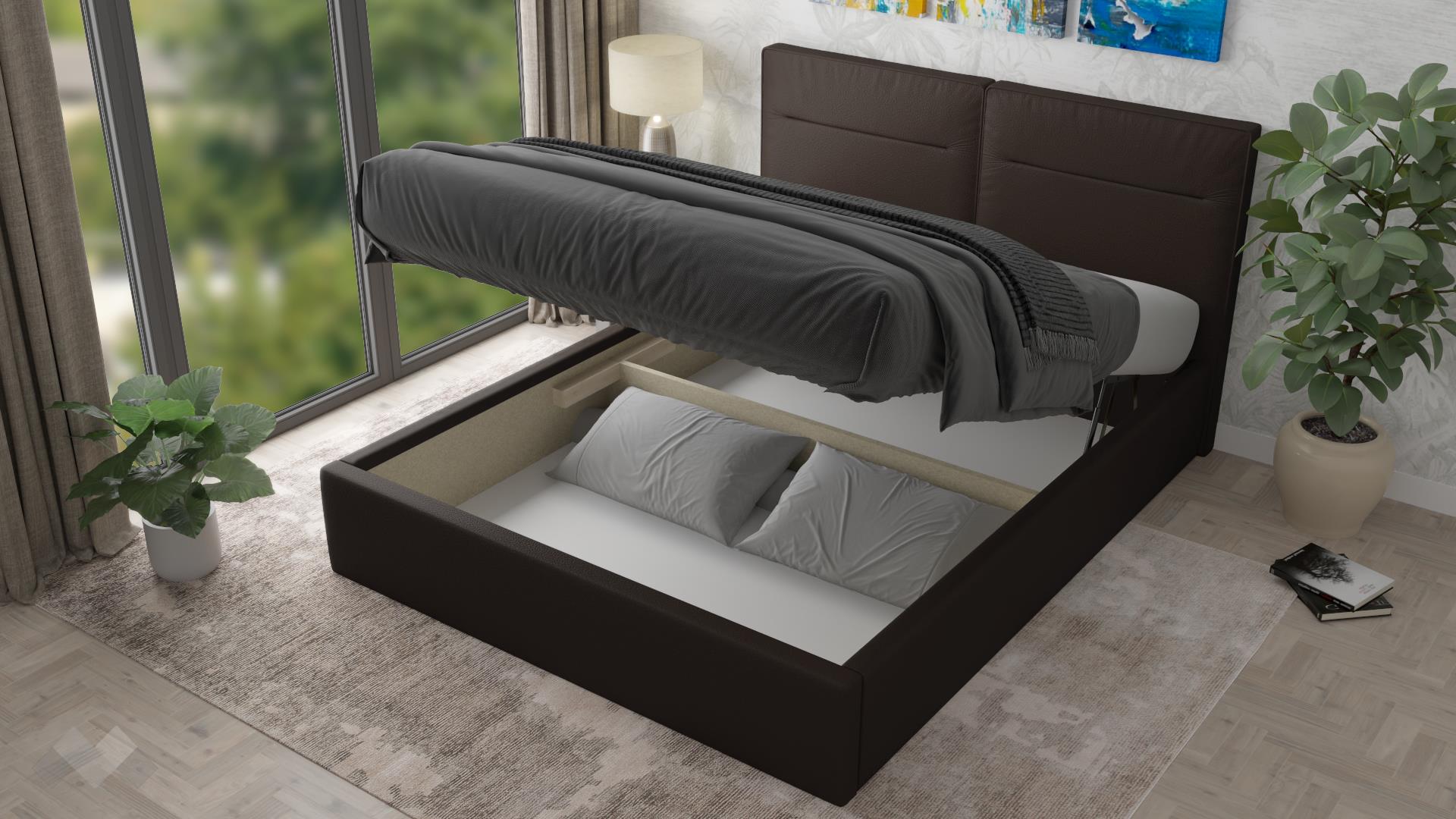 Спалнята ще ти осигури необходимото пространство за спокоен и комфортен сън. Тя е подходяща за матрак с размер 160/200 см. Таблата е с оптимална височина, мека и удобна за облягане при четене на книга или гледане на телевизия. Благодарение на включения повдигащ механизъм, в пространството под матрака можеш да съхраняваш завивки, възглавници, спално бельо или дрехи. Това е безценно предимство при по-малките жилища, където всеки сантиметър е от значение. Допълнителният делител на подматрачното пространство прави организацията на вещите още по-лесна.