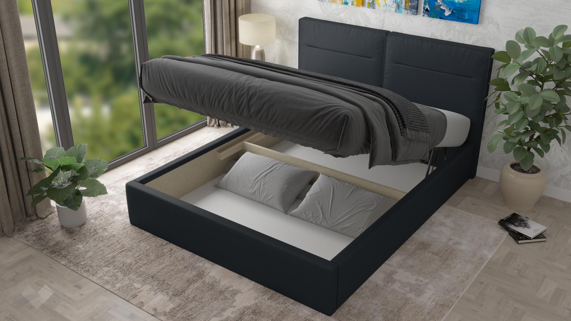 Спалнята ще ти осигури необходимото пространство за спокоен и комфортен сън. Тя е подходяща за матрак с размер 160/200 см. Таблата е с оптимална височина, мека и удобна за облягане при четене на книга или гледане на телевизия. Благодарение на включения повдигащ механизъм, в пространството под матрака можеш да съхраняваш завивки, възглавници, спално бельо или дрехи. Това е безценно предимство при по-малките жилища, където всеки сантиметър е от значение. Допълнителният делител на подматрачното пространство прави организацията на вещите още по-лесна.