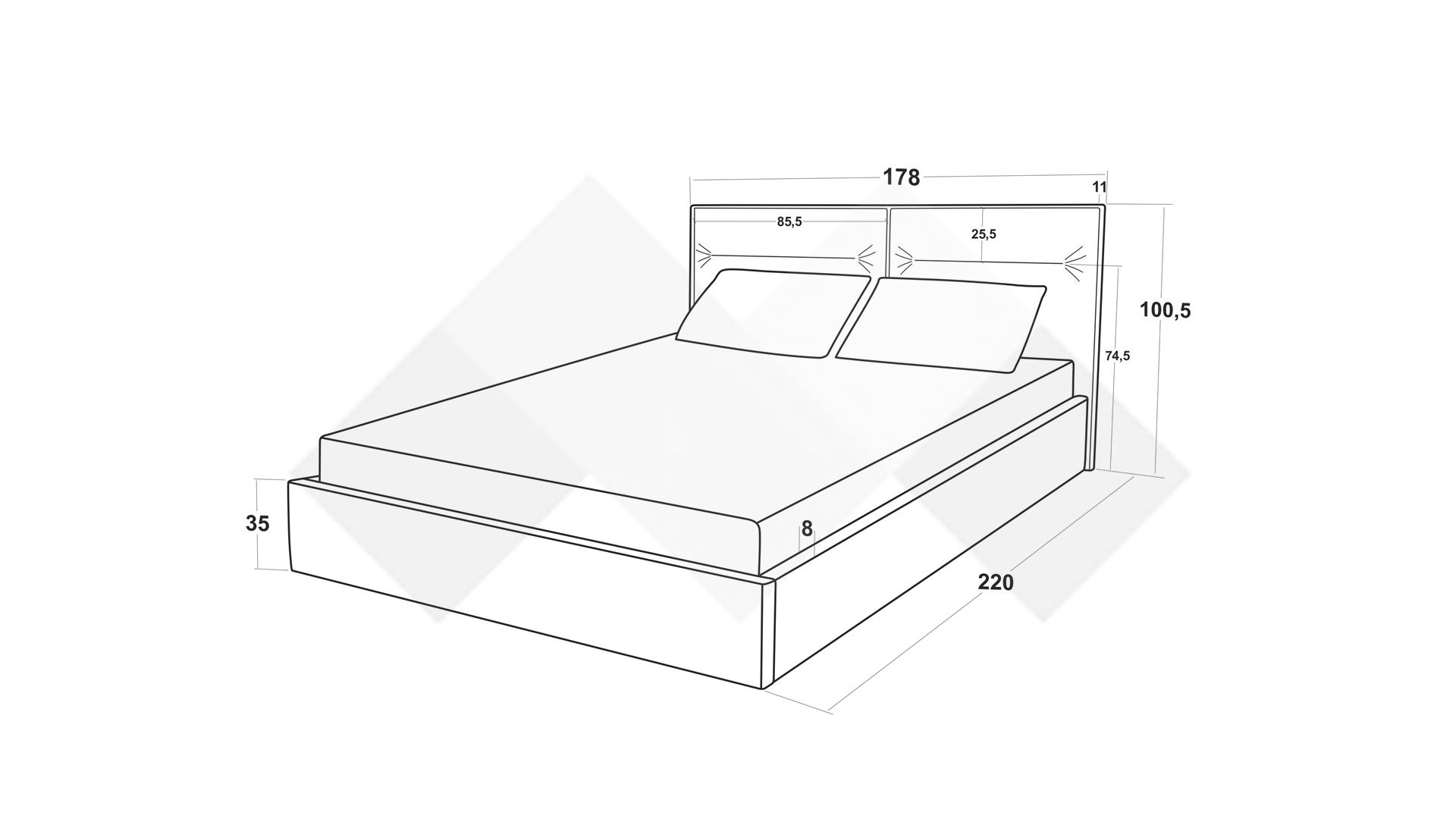Д: 220 см. Ш: 178 см. В: 100.5 см.