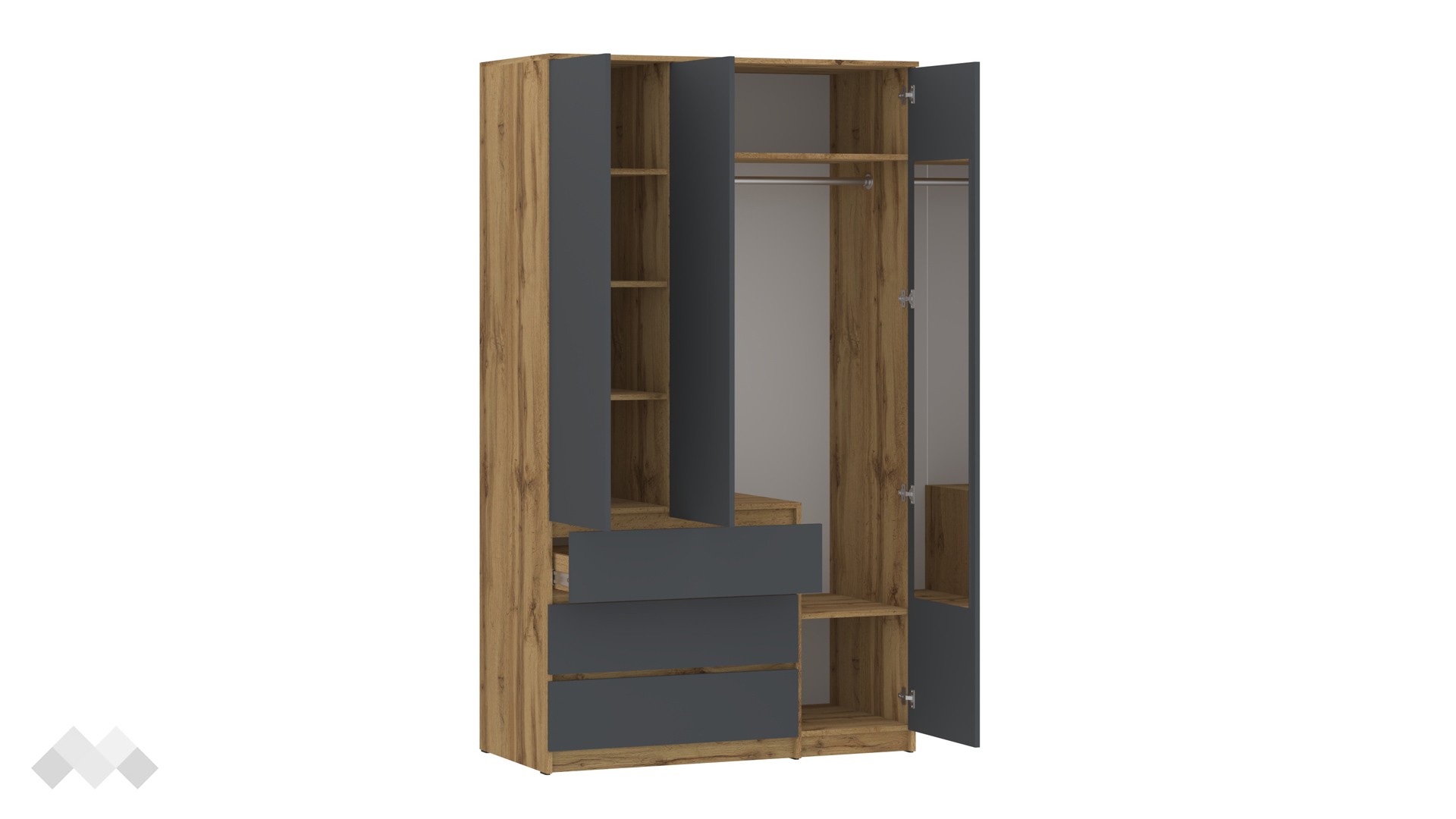 Той ще те впечатли с функционално разпределение, което ще ти позволи да подредиш добре всички дрехи и аксесоари. Благодарение на изчистения и модерен дизайн, този гардероб би се вписал във всеки интериор. Всяка дреха ще намери своето подходящо място, а ежедневният избор на тоалет ще се превърне в лесен и приятен ритуал, който няма да отнема от времето ти.