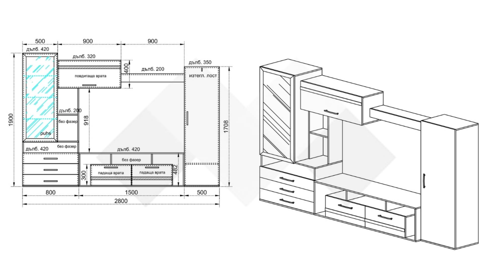 Ако имаш достатъчно място в хола, възползвай се от секция Омаха. Тя ще ти предложи чудесно разпределено пространство между отворени рафтове, витрина, гардероб, чекмеджета, шкафове. Вратичките са с плавно затваряне, а витрината е с пуш бутон - малки екстри, които внасят много лукс и удобство в ежедневието.