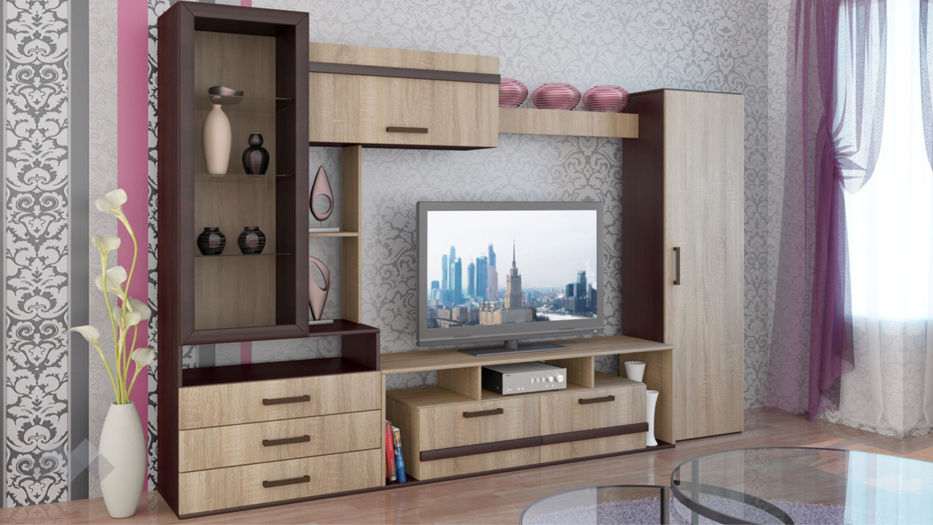 СекцияОмахатъмна сонома с венге с витрина