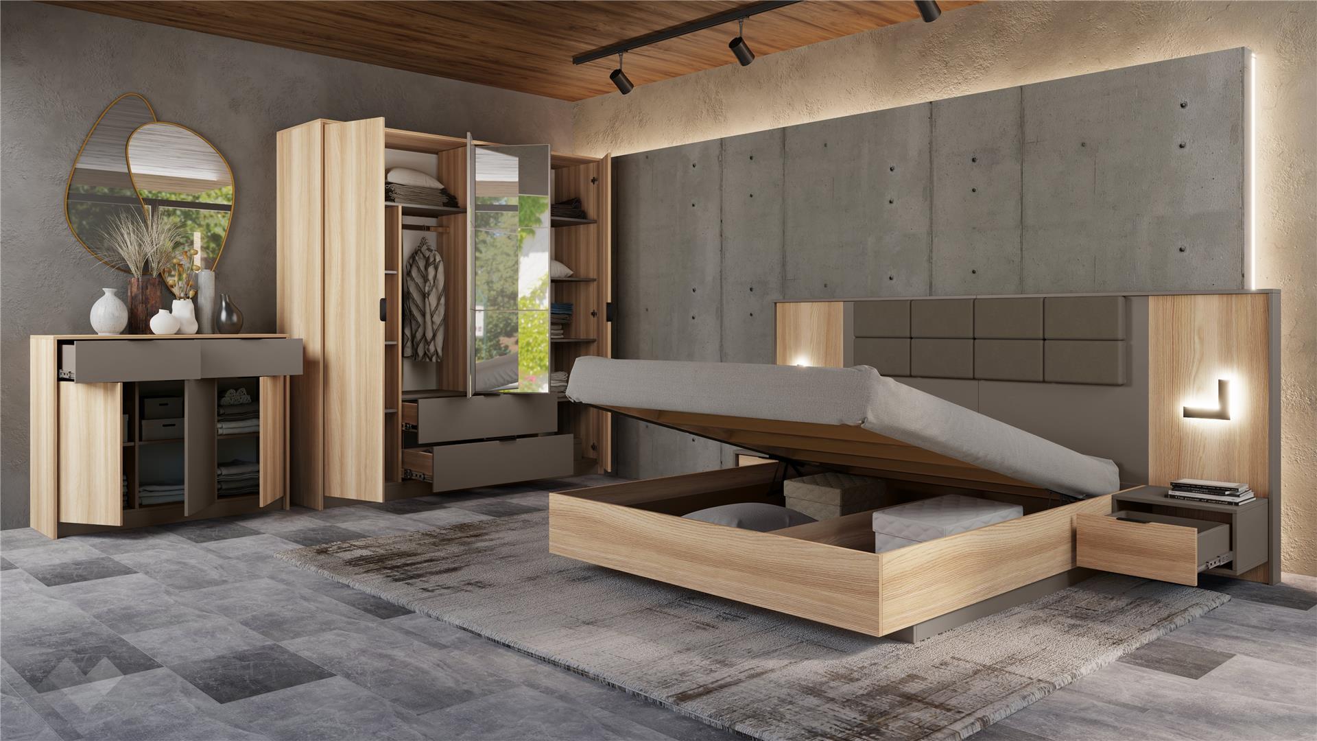 Спален комплект Опиум е перфектната комбинация от здравина, функционалност и стил, която ще превърне спалнята ти в удобно, елегантно и уютно пространство.