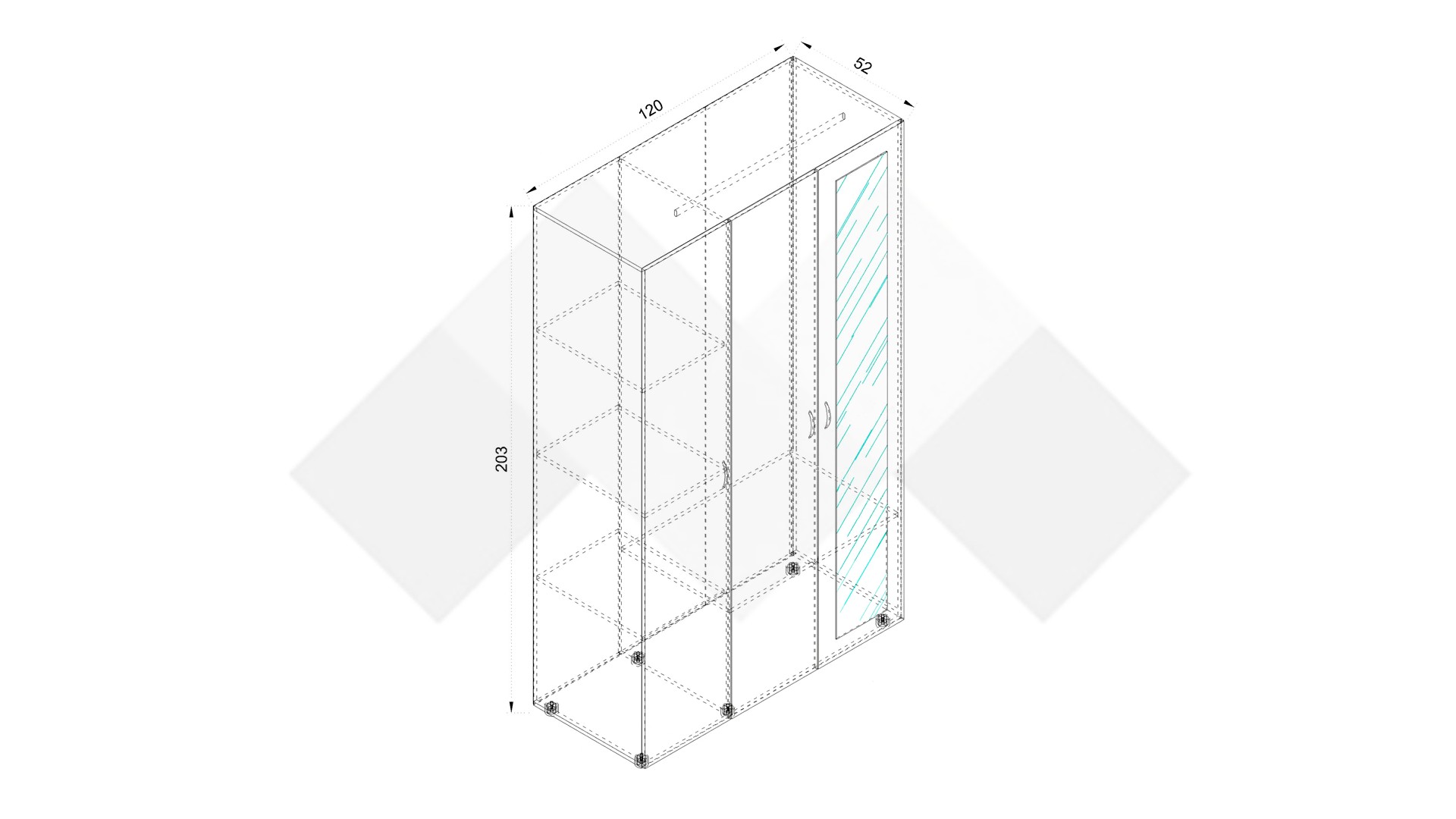 Оптима е практичен трикрилен гардероб с функционално разпределение. Декорът е неутрален, с усещане за естествени дървесни нишки във винтидж стил. Той е трикрилен, с 4 обемни рафта и лост за закачалки. Можеш да използваш рафтовете за съхранение на сгънати дрехи, по-обемни пуловери, завивки или други вещи, а на лоста да закачиш всичко, което искаш да бъде готово за обличане.