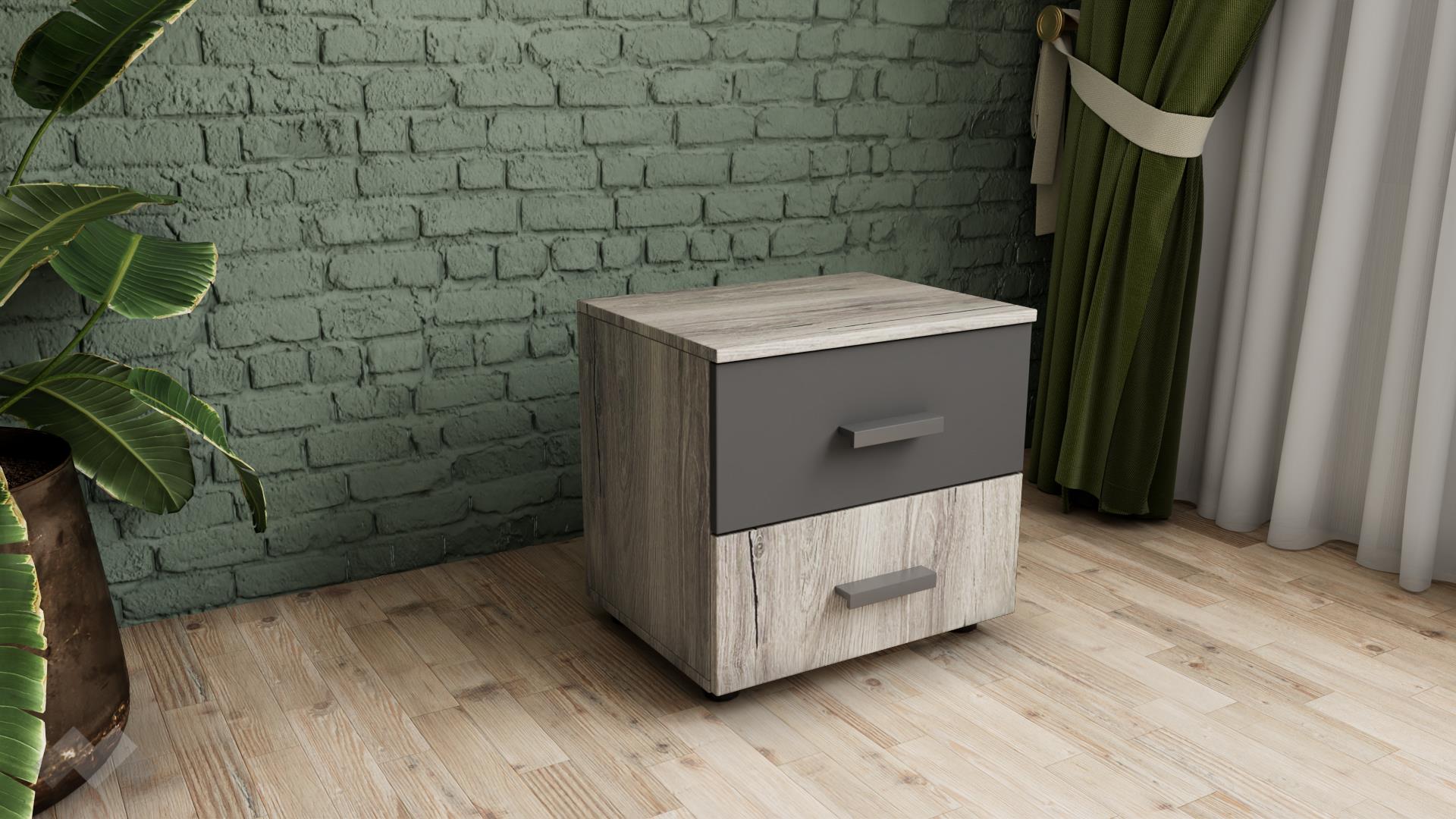 ✓ 2 чекмеджета ✓ компактен и практичен ✓ модерен винтидж декор с WNR структура ✓ качествена изработка ✓ 16 мм ПДЧ