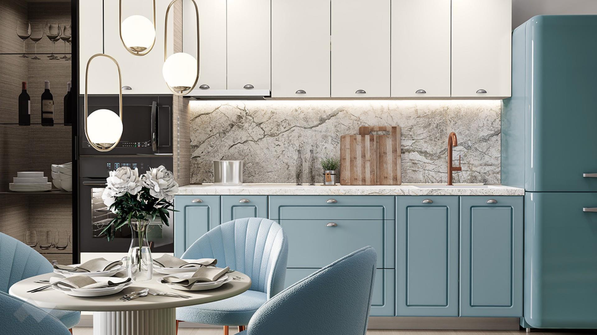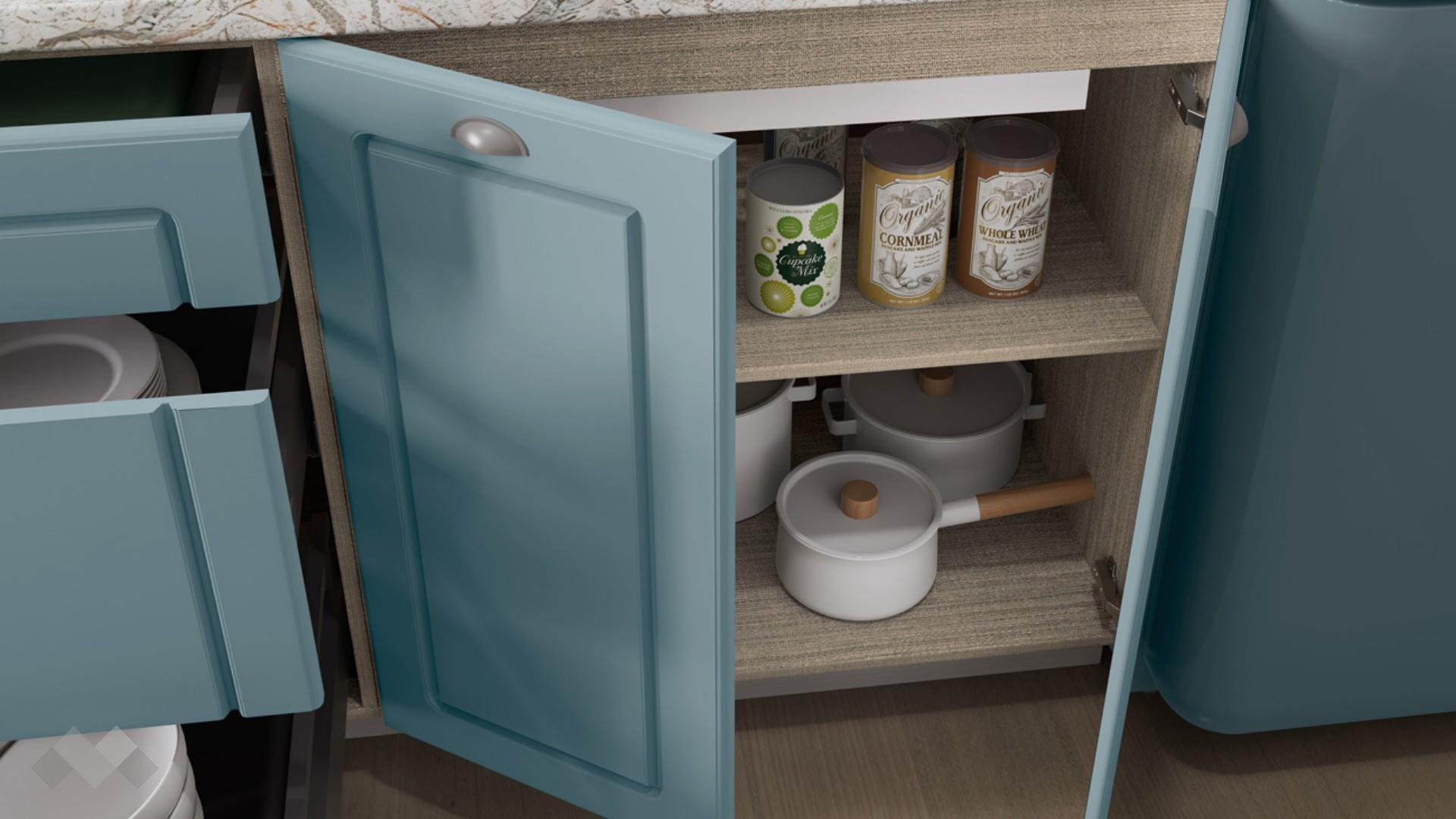 Страхотната модерна комбинация между корпус мока и лице деним мат с крийм гланц, придава на кухнята характер и уют.