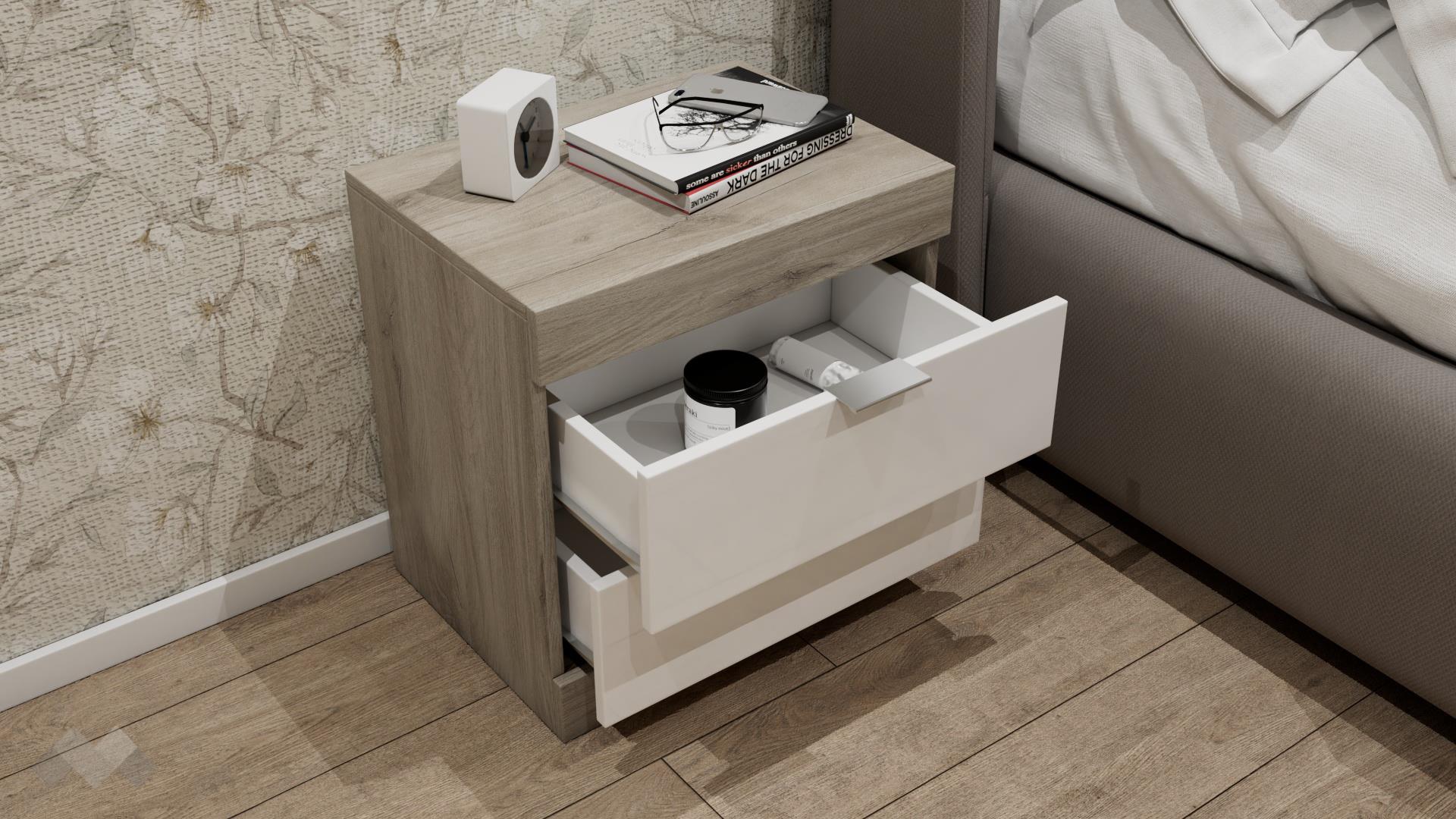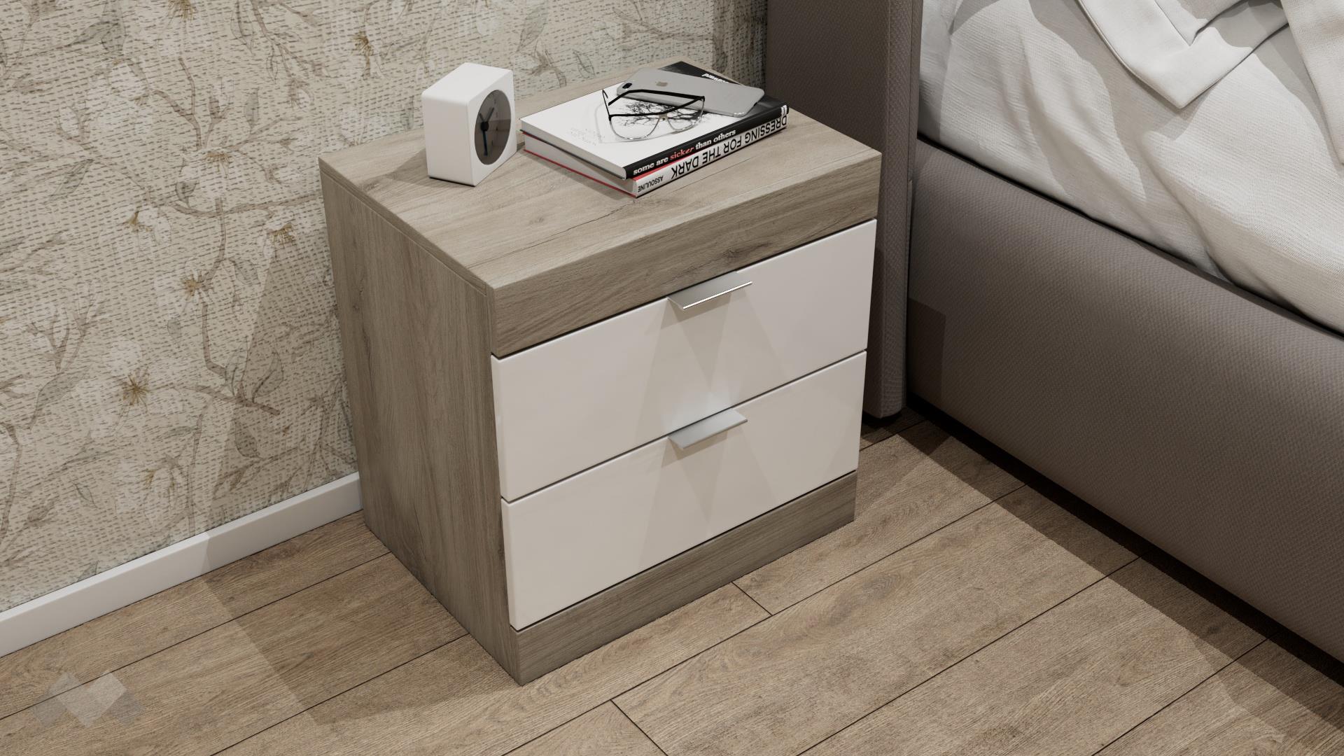 Благодарение на двете чекмеджета лесно ще организираш пространството около леглото. Цветовите комбинации, в които се предлага лесно ще се съчетаят с интериора във всеки един дом. Освен практичен, моделът е изработен от 16 мм ПДЧ, ето защо ще му се наслаждаваш дълго време.