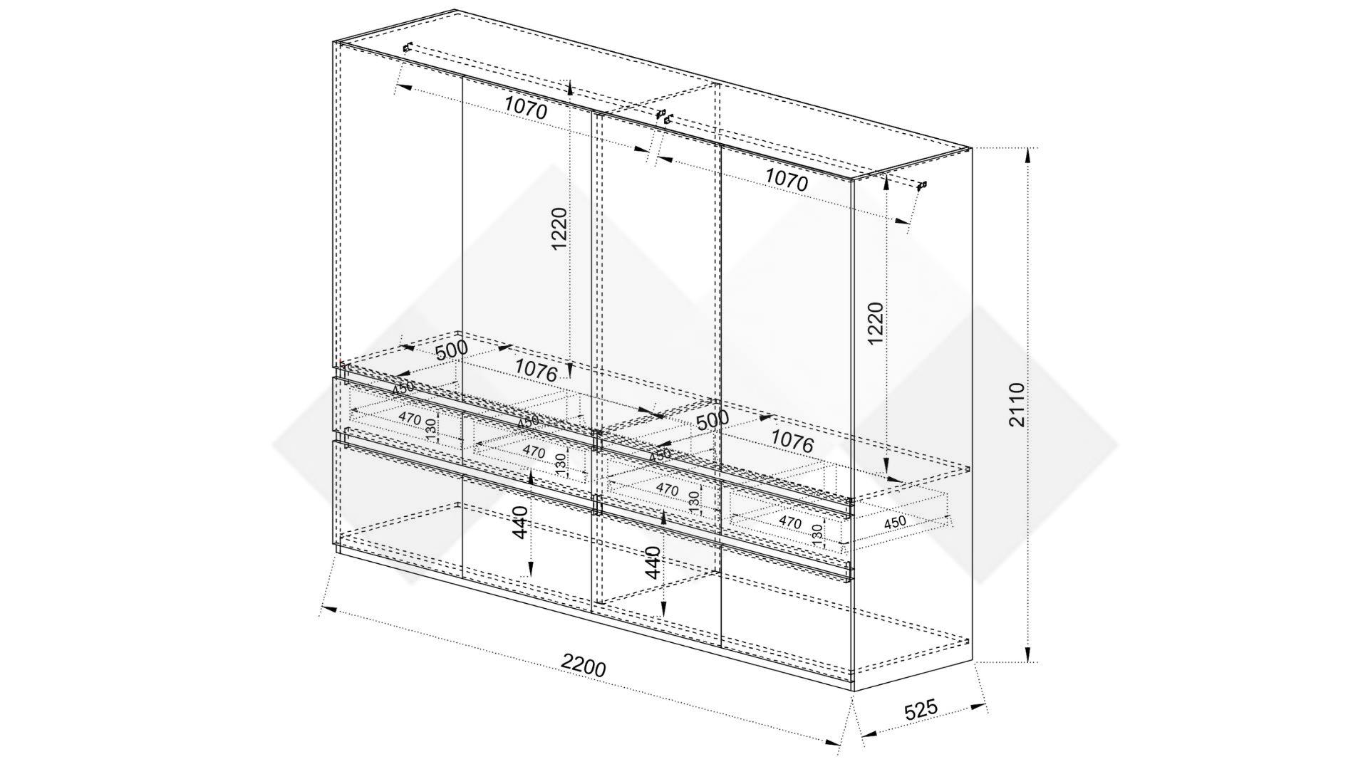 Гардероб: Д: 220 см Ш: 52,5 см В: 211 см