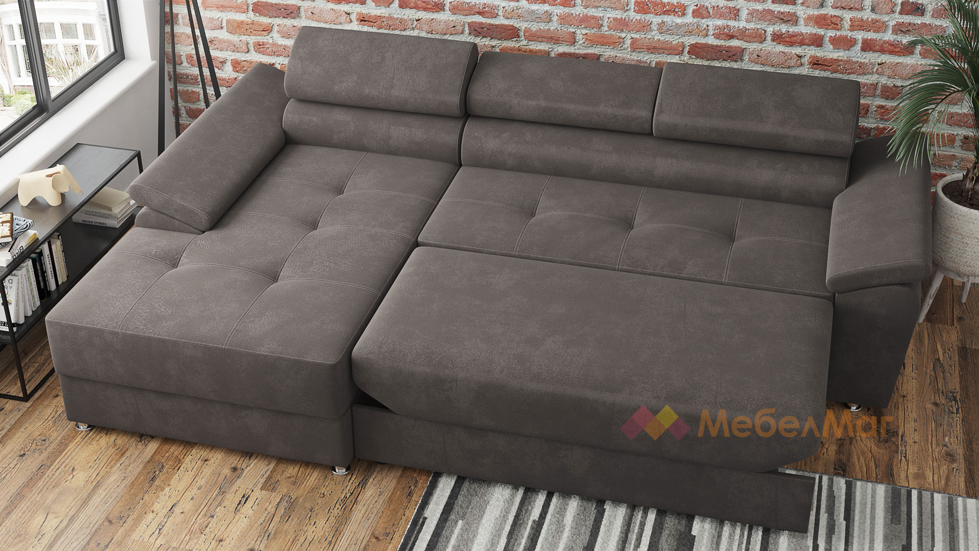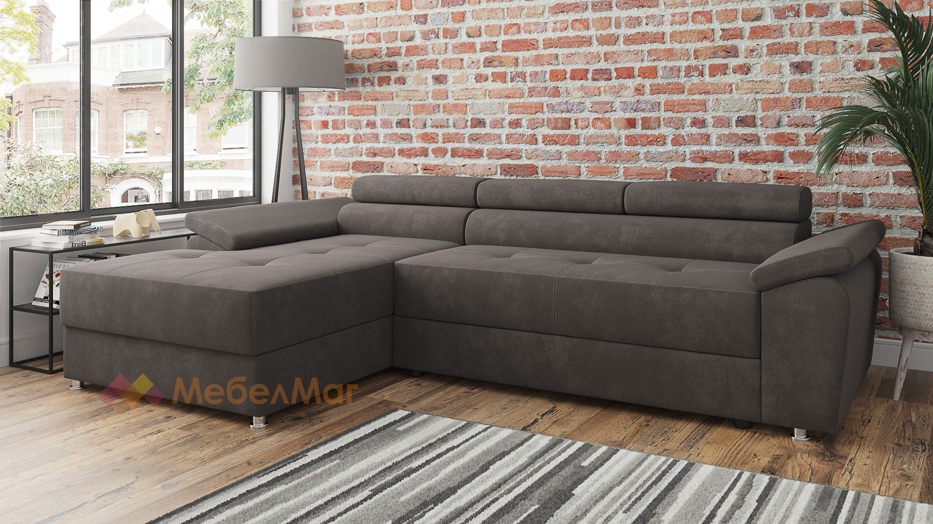 Ъглов диван Равена предлага изключителен комфорт и удобство, обогатени със завладяващ дизайн, включващ три регулируеми подглавника, които ти позволяват да настроиш ъгъла на наклона, осигурявайки идеалната позиция за главата и гърба спрямо твоите предпочитания.