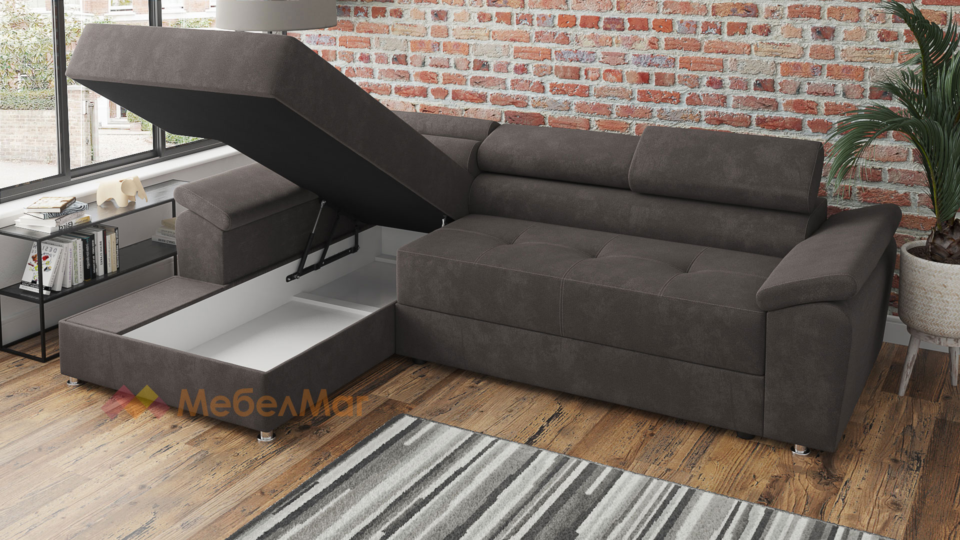 Функцията сън може да бъде лесно активирана чрез подматрачния механизъм, превръщайки дивана в удобно легло с размери 126/210 см. Функцията за сън, с която разполагаш, прави този диван идеален за почивка, предлагайки меко и уютно място за отдих. Раклата допълнително увеличава функционалността на ъгловия диван Равена, предоставяйки повече място с възможност за съхранение на завивки или други вещи.