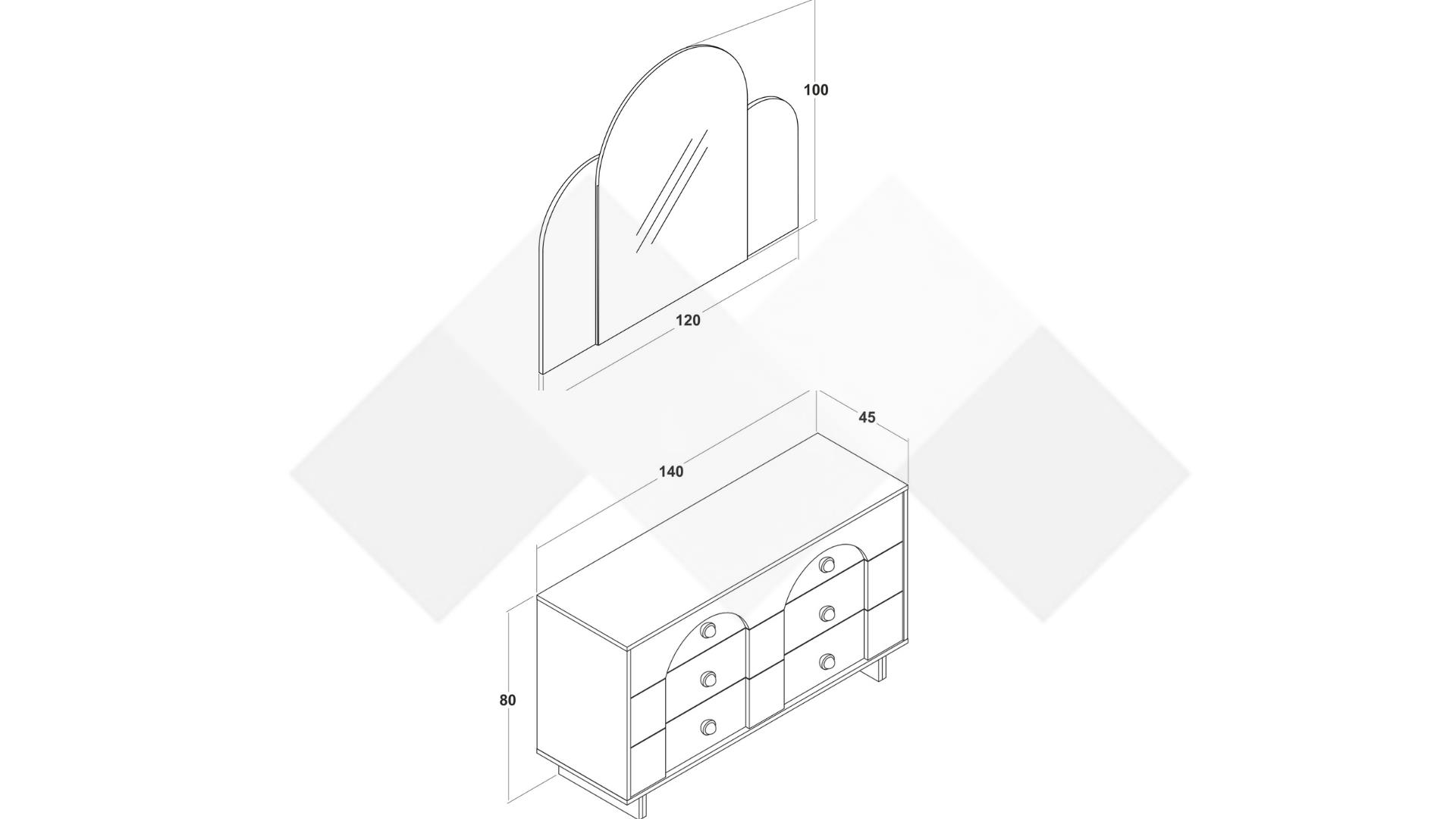 Скринът е с четири просторни чекмеджета с механизъм за плавно затваряне, в които може да прибереш както дрехи и бельо, така и козметика, малки електроуреди. Плотът на скрина е страхотен за поставяне на декорация, за да направиш стаята още по-ущтна или да подредиш най-често използваната си козметика. Огледалото е най-ценния помощник при изграждане на визия, за това към скрина има и голямо огледало.