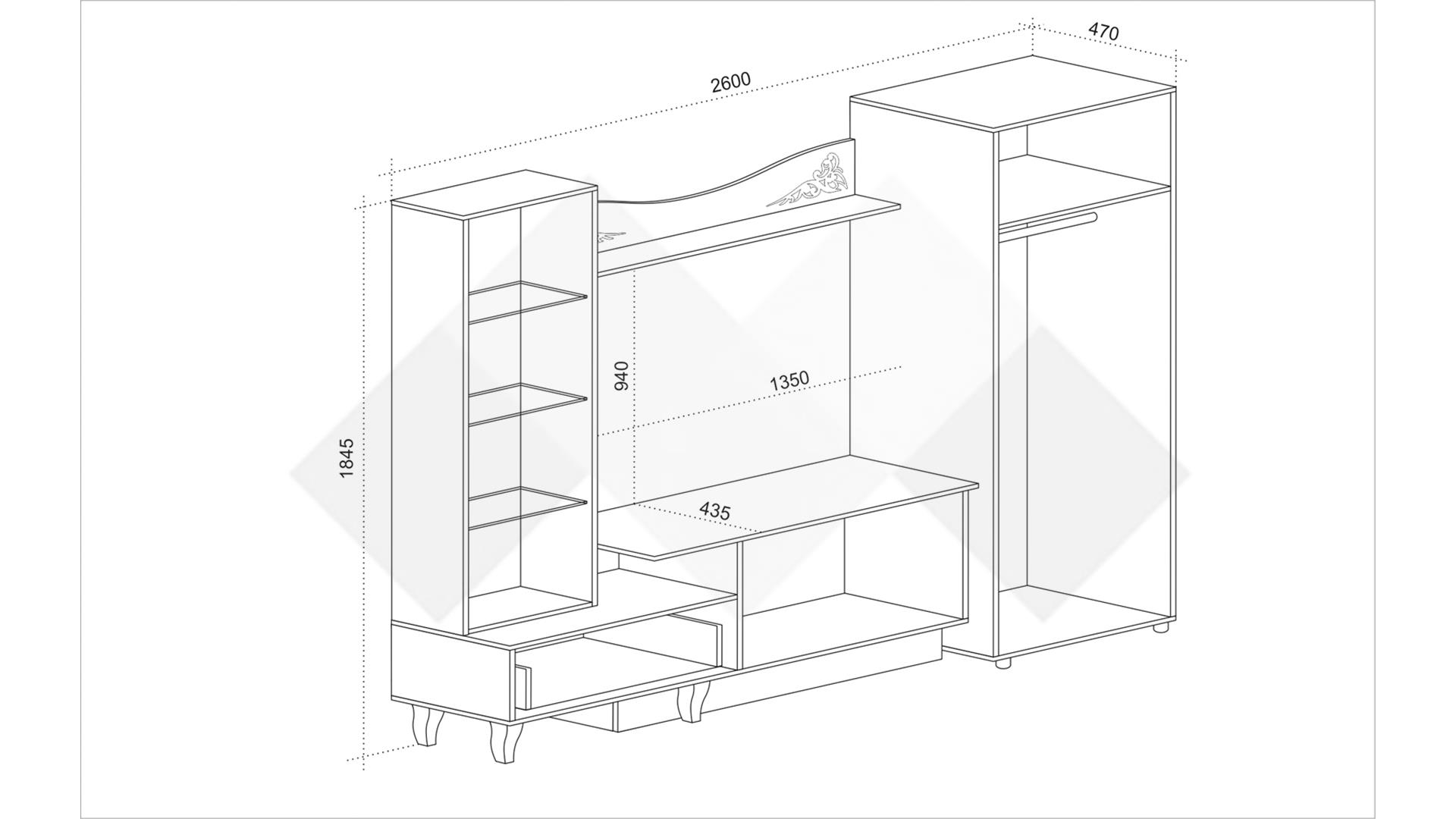 На твое разположение имаш широк ТВ шкаф с допълнителна ниша, в която да поставиш ТВ приемник, конзоли за игра или DVD плейър. Секция Роксана разполага с витрина, където да подредиш различни предмети, като фотографии, сувенири от мечтаните дестинации или други красиви вещи, които искаш да покажеш.