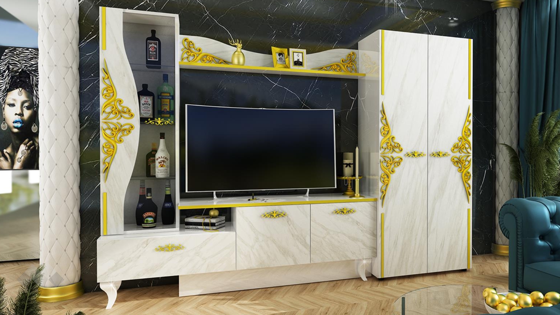 Дневната е помещението където най-често се канят гости. Затова трябва да заложиш на стил и модерен дизайн. С тази величествена секция Роксана, ще впечатлиш всеки посетил твоя дом. Златните орнаменти и лайстни придават допълнителен разкош на модела. В същото време секцията ще те изуми с функционално разпределение.