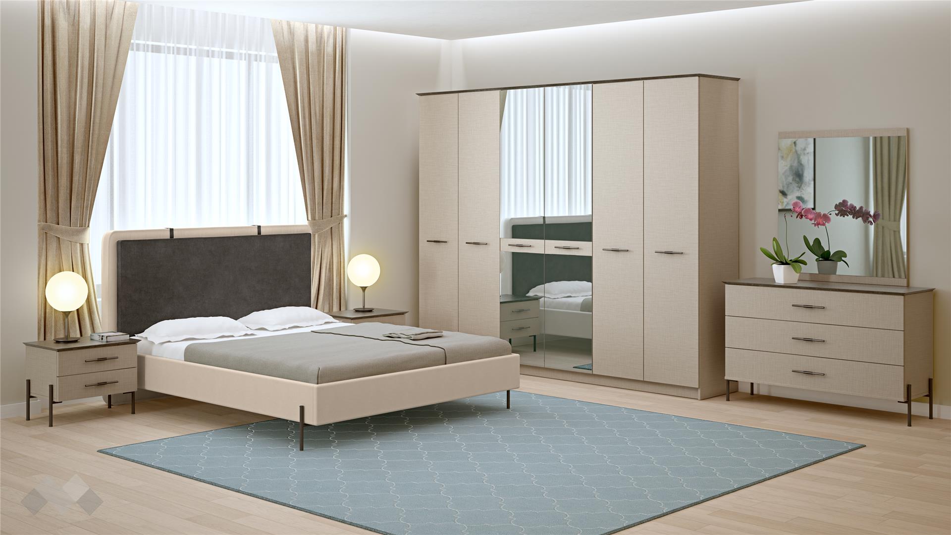Спален комплектСалвадорпамучно бежов с атрацит