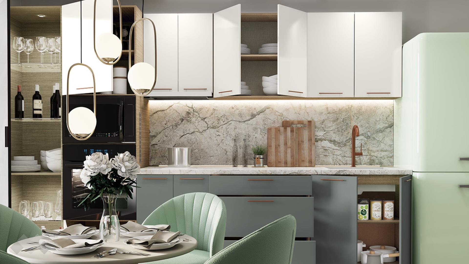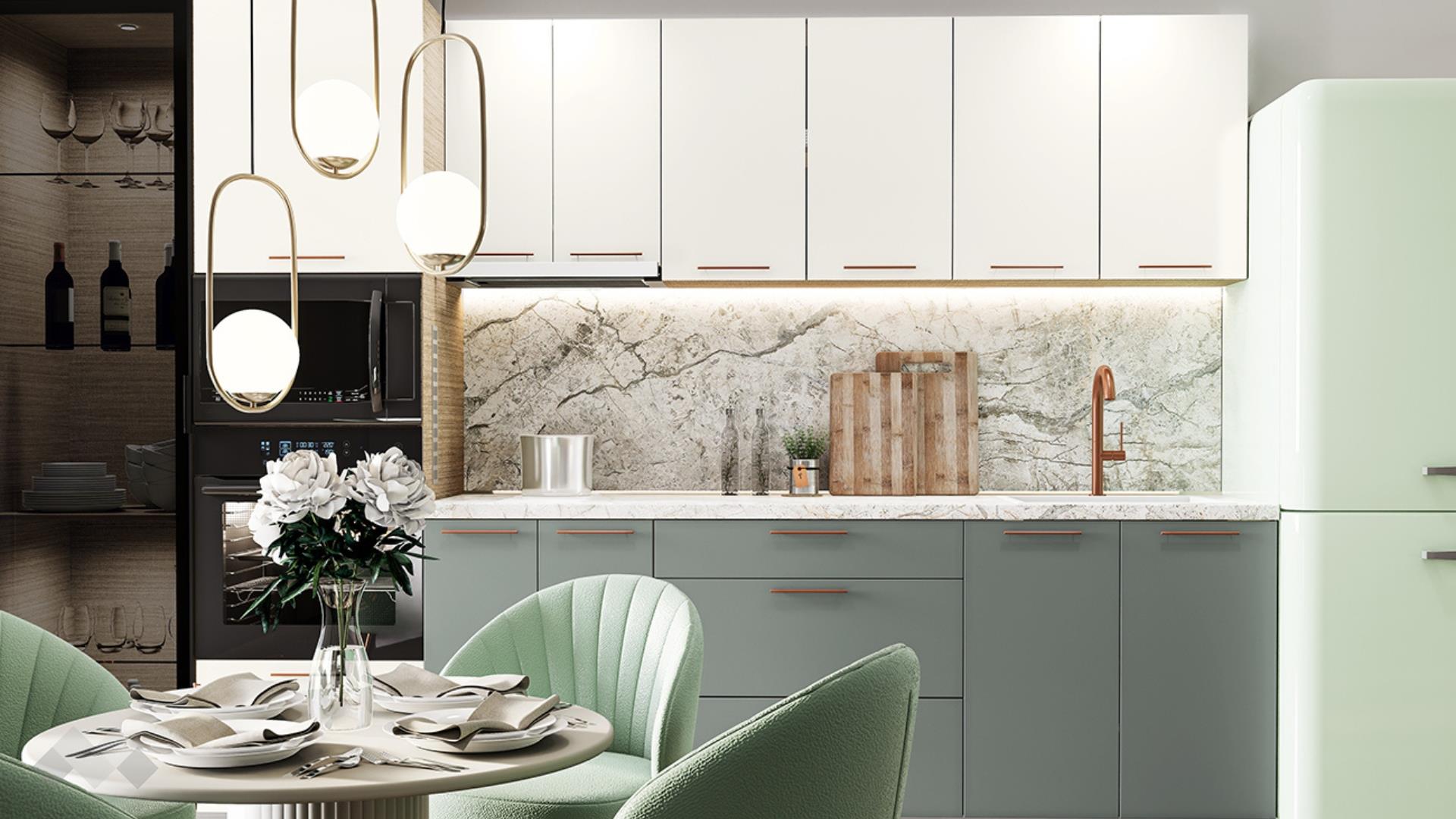 Страхотната модерна комбинация между корпус мока и лице крийм гланц и олив мат, придава на кухнята характер и уют.