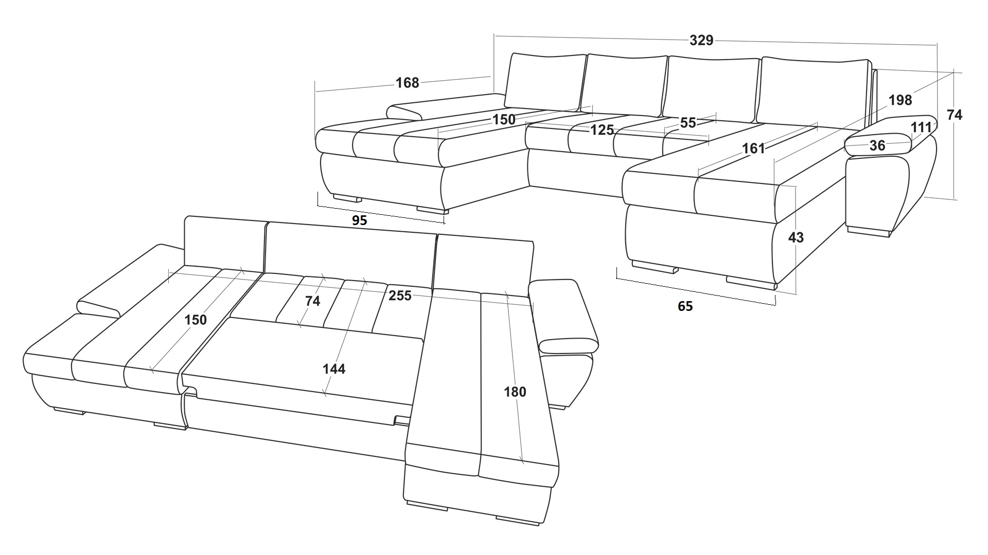 Д: 329 см Ш: 198 см В: 74 см