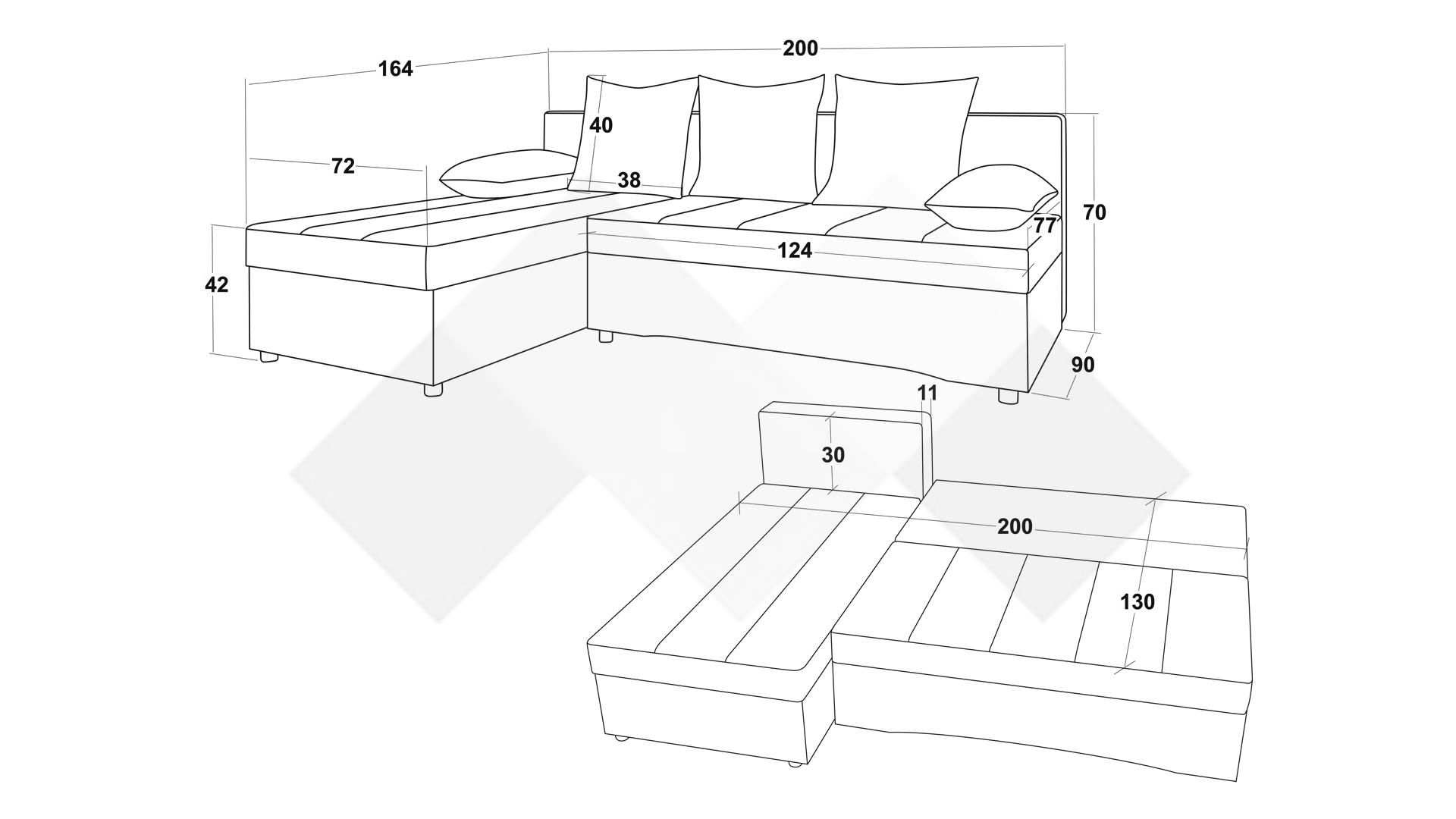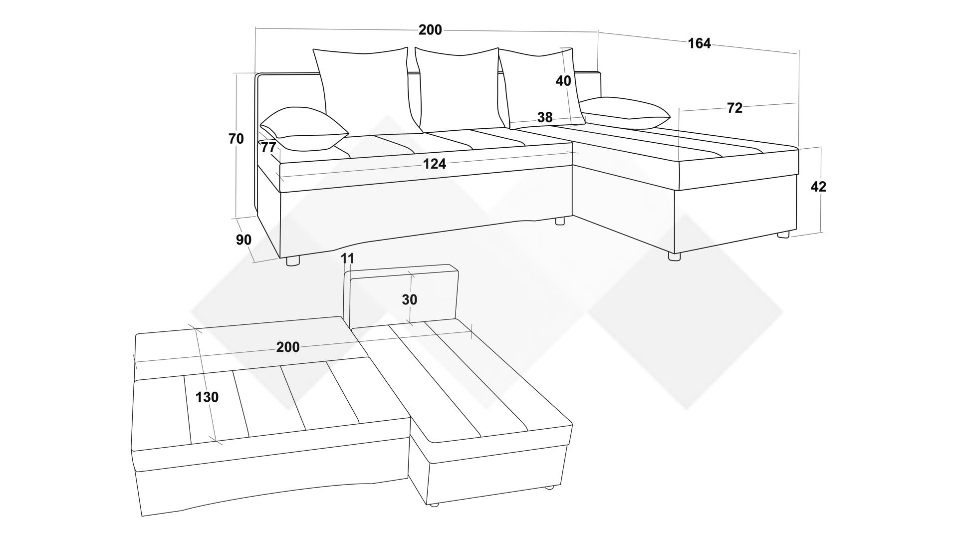 Конструкцията на модела е изработена от твърда основа с масивна дървесина в комбинация с ПДЧ и 10 см пенополиуретан. Това автоматично означава, че ще се радваш на предимствата му доста дълго време и ще си доволен от избора си на мека мебел.