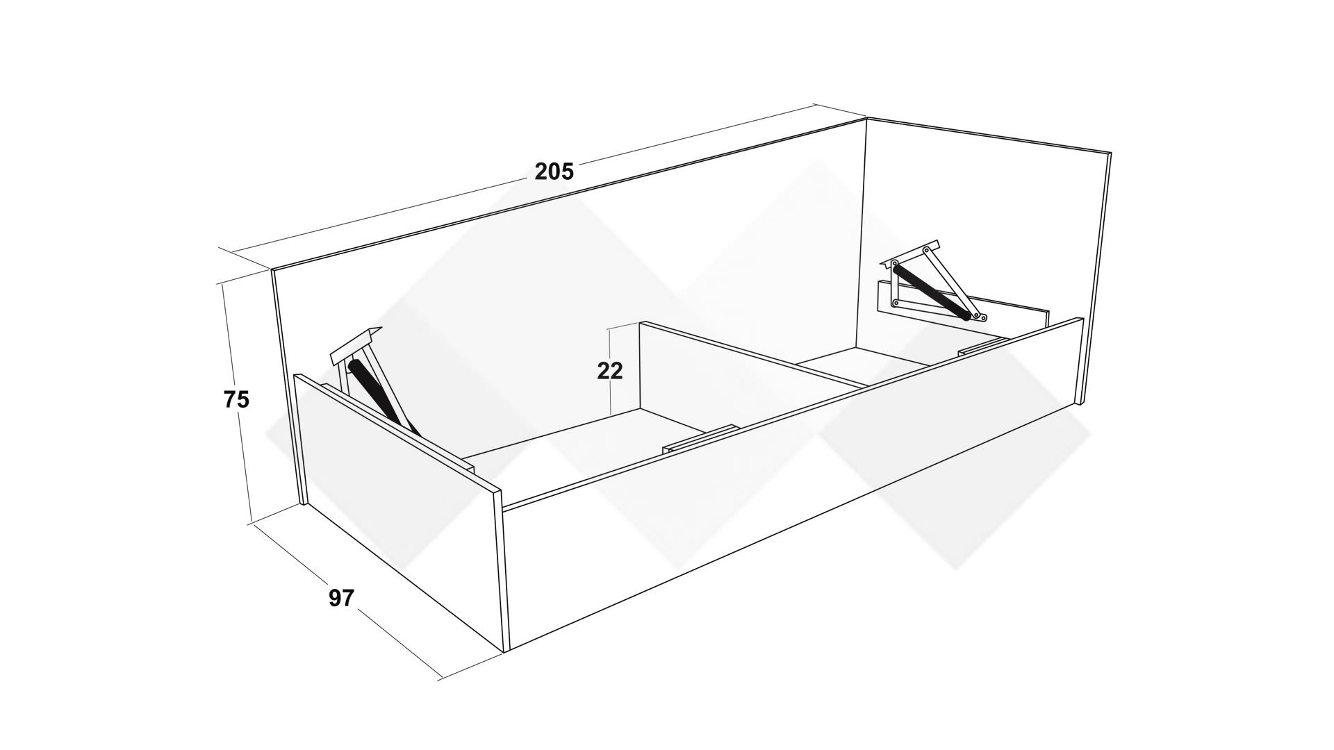 Д: 97 см Ш: 205 см В: 75 см