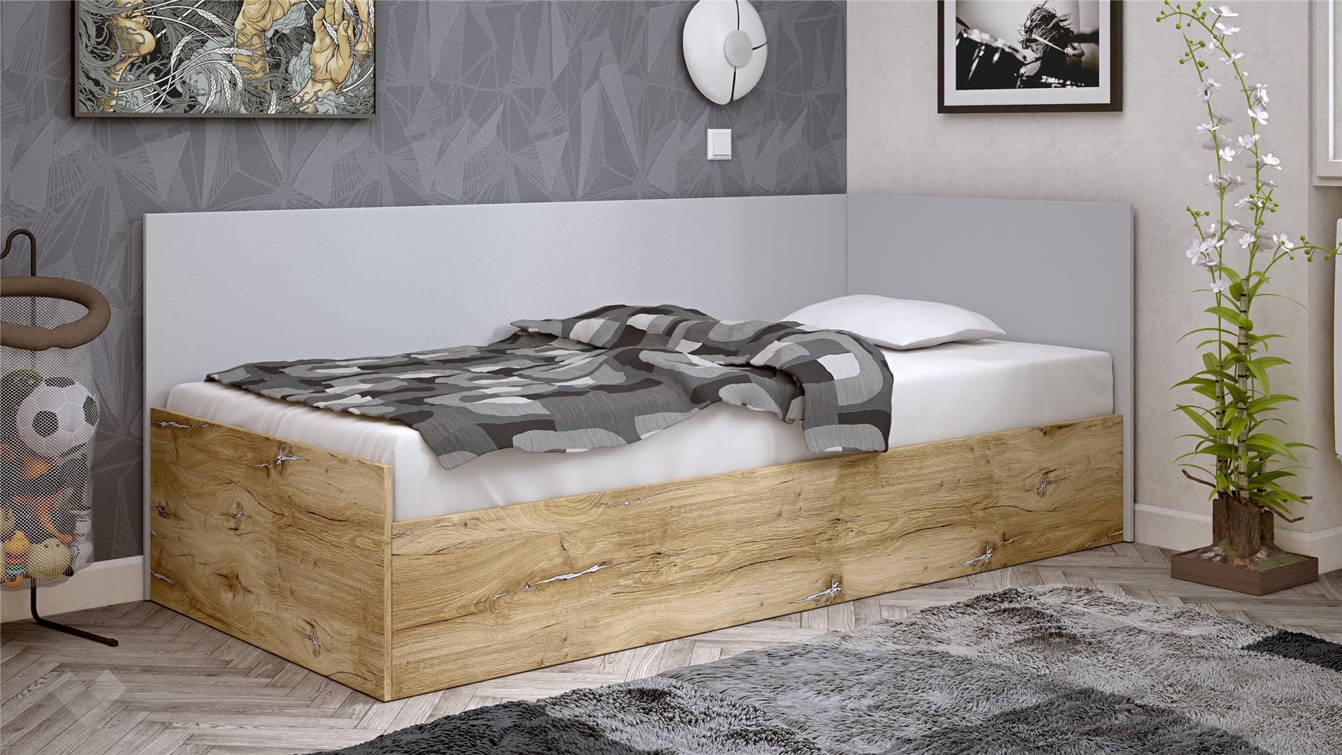 Ъглово легло 90/200Селтиккелтски дъб със светло сиво