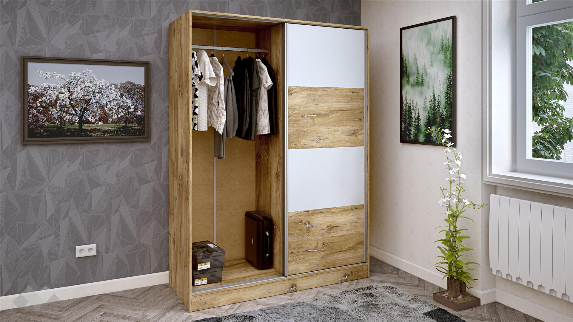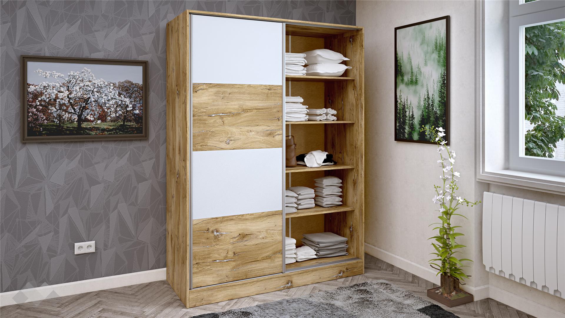 ⭐ Предимства: ✓ 16 мм ПДЧ ✓ с плъзгащи врати ✓ 4 рафта ✓ лост за закачалки ✓модерен дизайн ✓ практично разпределение ✓ качествена изработка