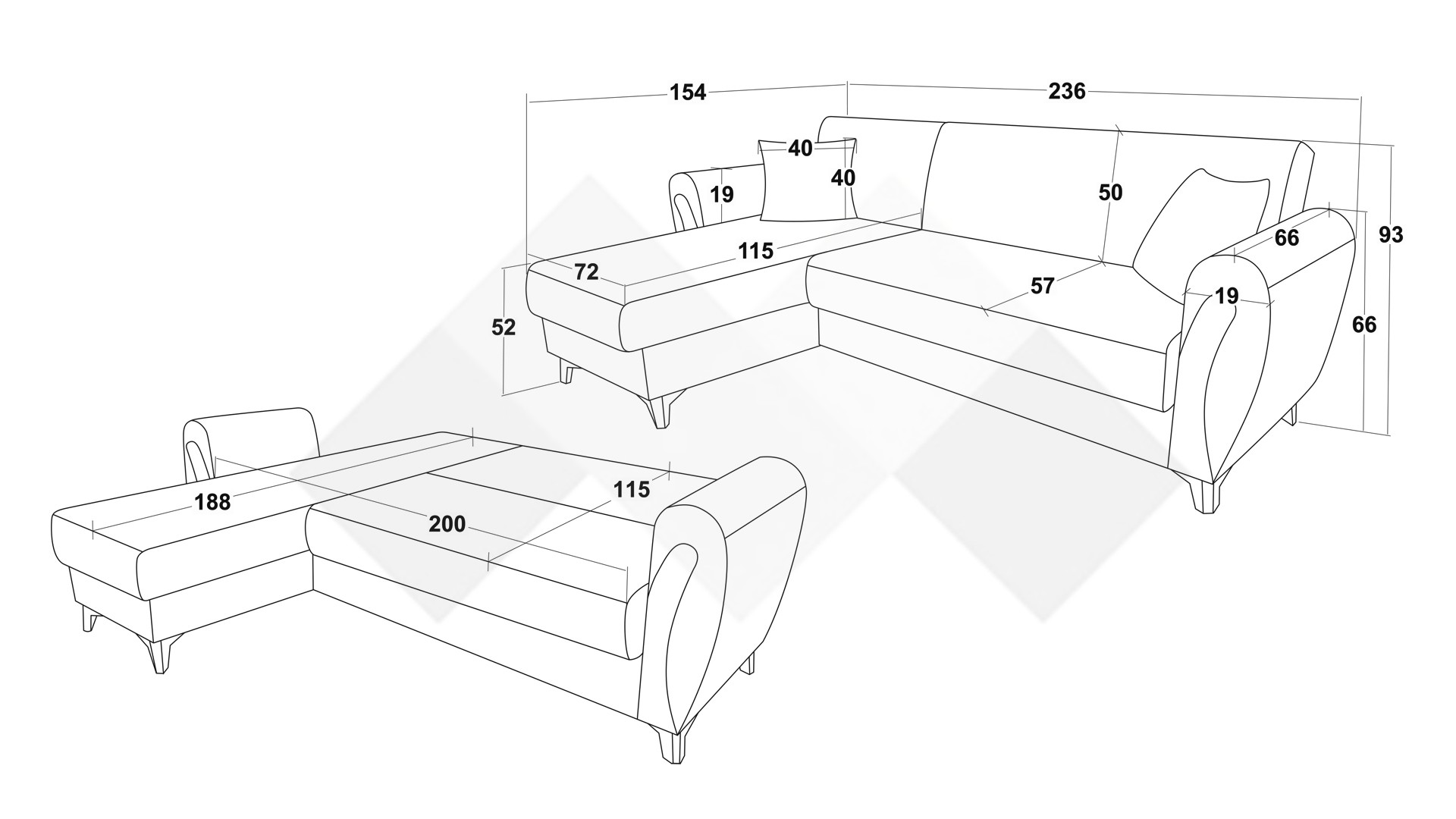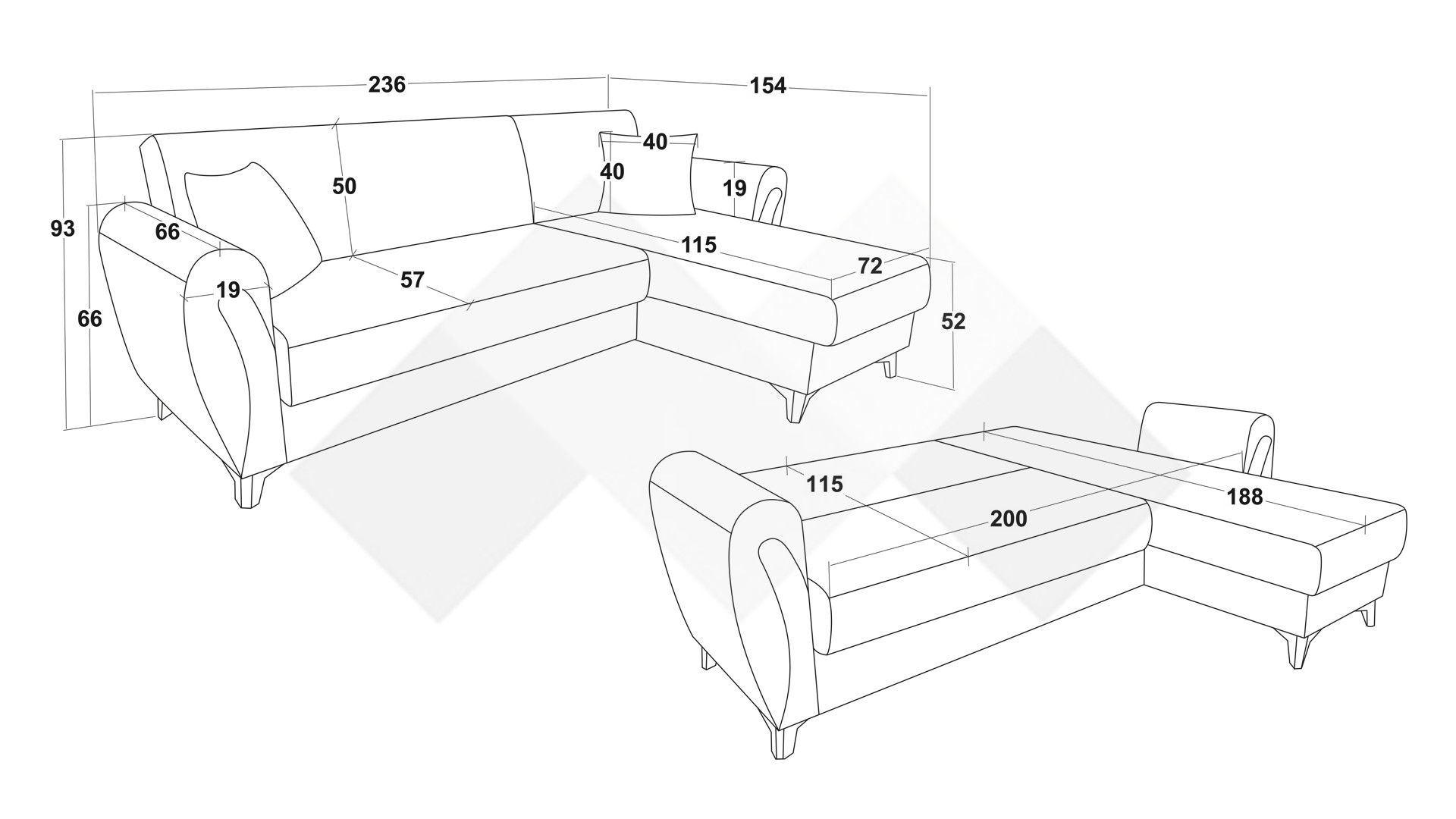 Благодарение на клик-клак механизма, диванът се трансформира бързо и лесно в удобно легло с площ за сън 200/115 см. Само с едно движение можеш да го разгънеш или прибереш, което го прави изключително удобен за ежедневна употреба или за настаняване на гости.