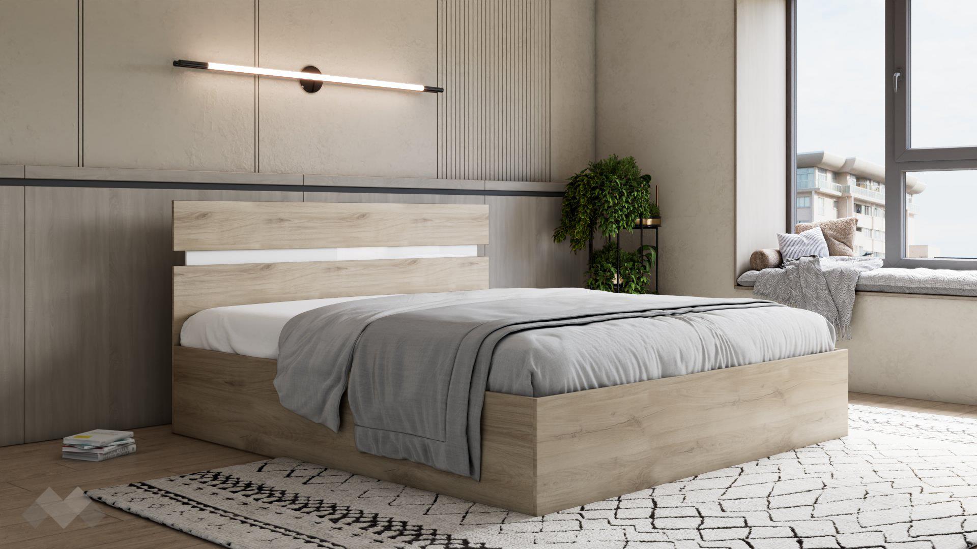 Спалня 180/200Синтиясонома арвен с бял гланц с повдигащ механизъм: без включен матрак