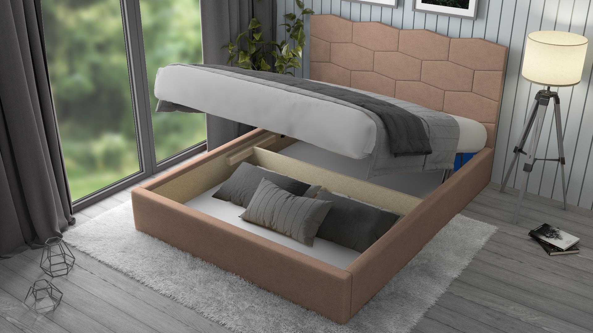 Спалнята ти предоставя необходимото пространство за спокоен и комфортен сън. Тя е подходяща за матрак с размер 160/200 см. Таблата е с оптимална височина, мека и удобна за облягане при четене на книга или гледане на телевизия. Включеният повдигащ механизъм повдига матрака и открива широко пространство, готово да побере всички възглавници и завивки, на които все не се намира място. Това е безценно предимство при по-малките жилища, където всеки сантиметър е от значение. Допълнителният делител на подматрачното пространство прави организацията на вещите още по-лесна.
