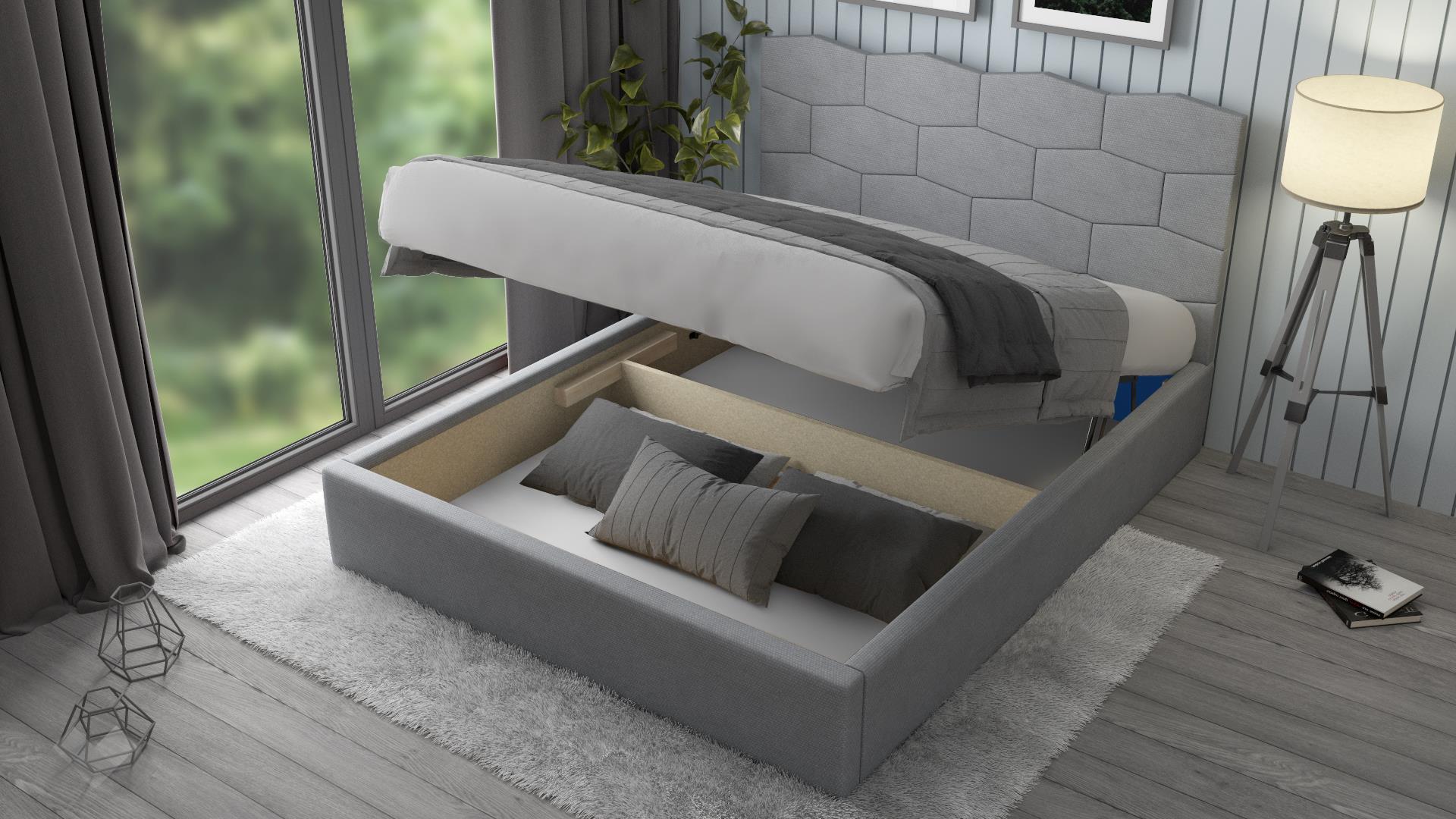 Спалнята ти предоставя необходимото пространство за спокоен и комфортен сън. Тя е подходяща за матрак с размер 160/200 см. Таблата е с оптимална височина, мека и удобна за облягане при четене на книга или гледане на телевизия. Включеният повдигащ механизъм повдига матрака и открива широко пространство, готово да побере всички възглавници и завивки, на които все не се намира място. Това е безценно предимство при по-малките жилища, където всеки сантиметър е от значение. Допълнителният делител на подматрачното пространство прави организацията на вещите още по-лесна.