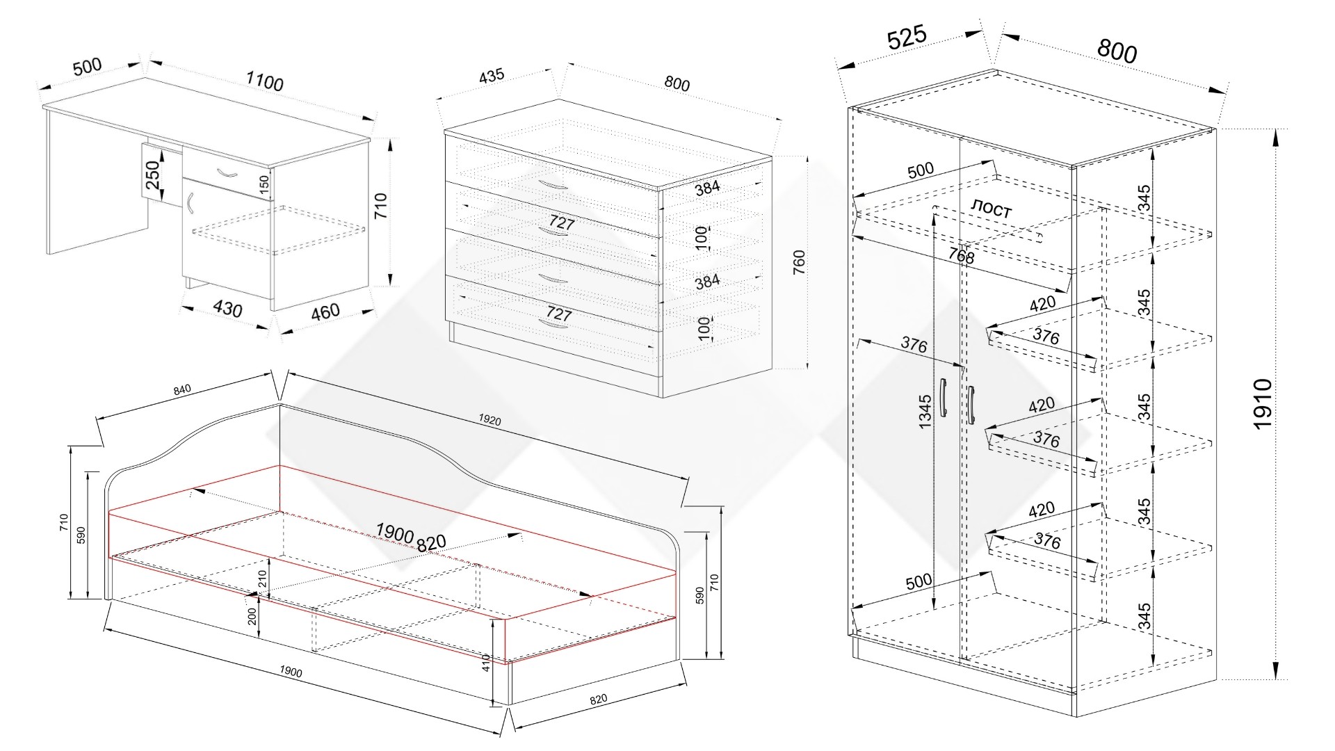 ⭐ Предимства: ✓ легло с меки линии ✓ за матрак 82/190 ✓ двукрилен гардероб с 4 рафта и лост за закачалки ✓ скрин с 4 чекмеджета ✓ бюро с шкаф и чекмедже ✓ семпъл дизайн ✓ повдигащ механизъм ✓ делител на подматрачното пространство ✓ механизъм за плавно затваряне ✓ качествена изработка ✓ 16 мм ПДЧ