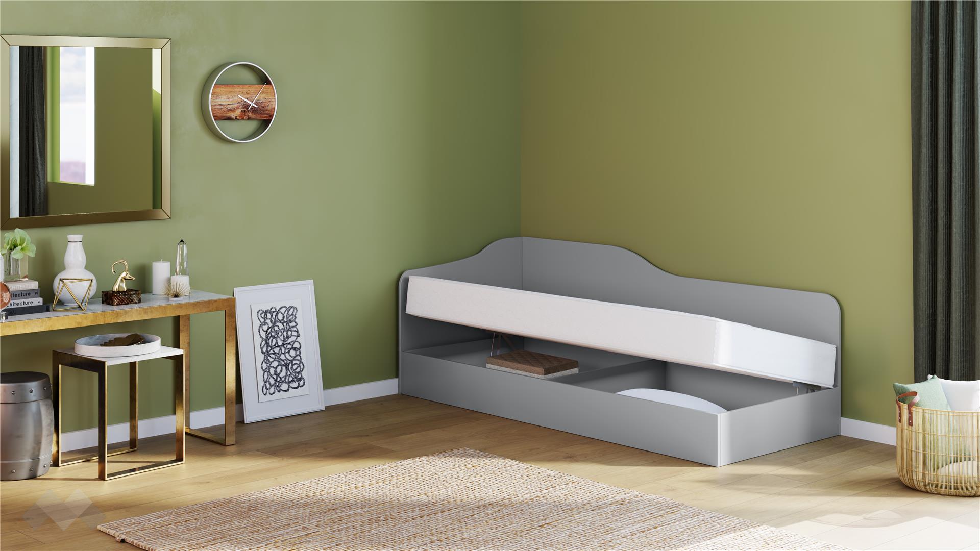 Ъгловото легло е подходящо за матрак с размери 82/190 см. Леглото е с универсално разположение – по време на монтажа, изолиращата табла и механизма могат да се монтират отляво или от дясно, така че да пасне идеално на стаята. Включеният повдигащ пружинен механизъм осигурява лесен и бърз достъп до подматрачното пространство, което е перфектно за съхранение на спално бельо, играчки, сезонни дрехи и други вещи.
