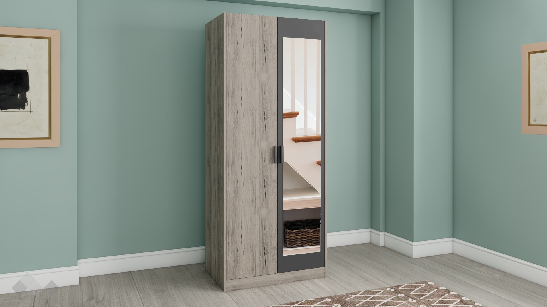 ✓ двукрилен ✓ 2 рафта ✓ огледало ✓ лост за закачалки ✓ модерен декор с WNR структура ✓ практично разпределение ✓ качествена изработка