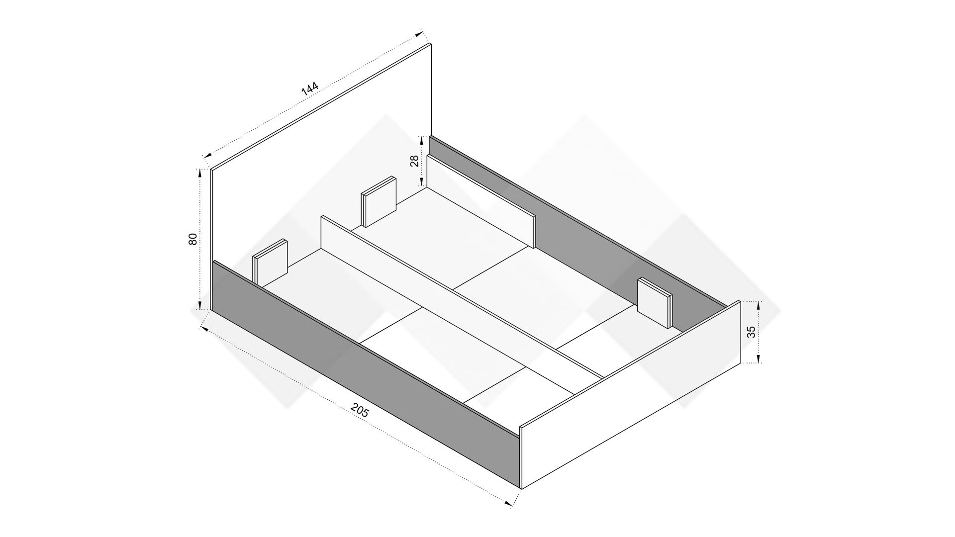 Д: 205 см Ш: 144 см В: 80 см