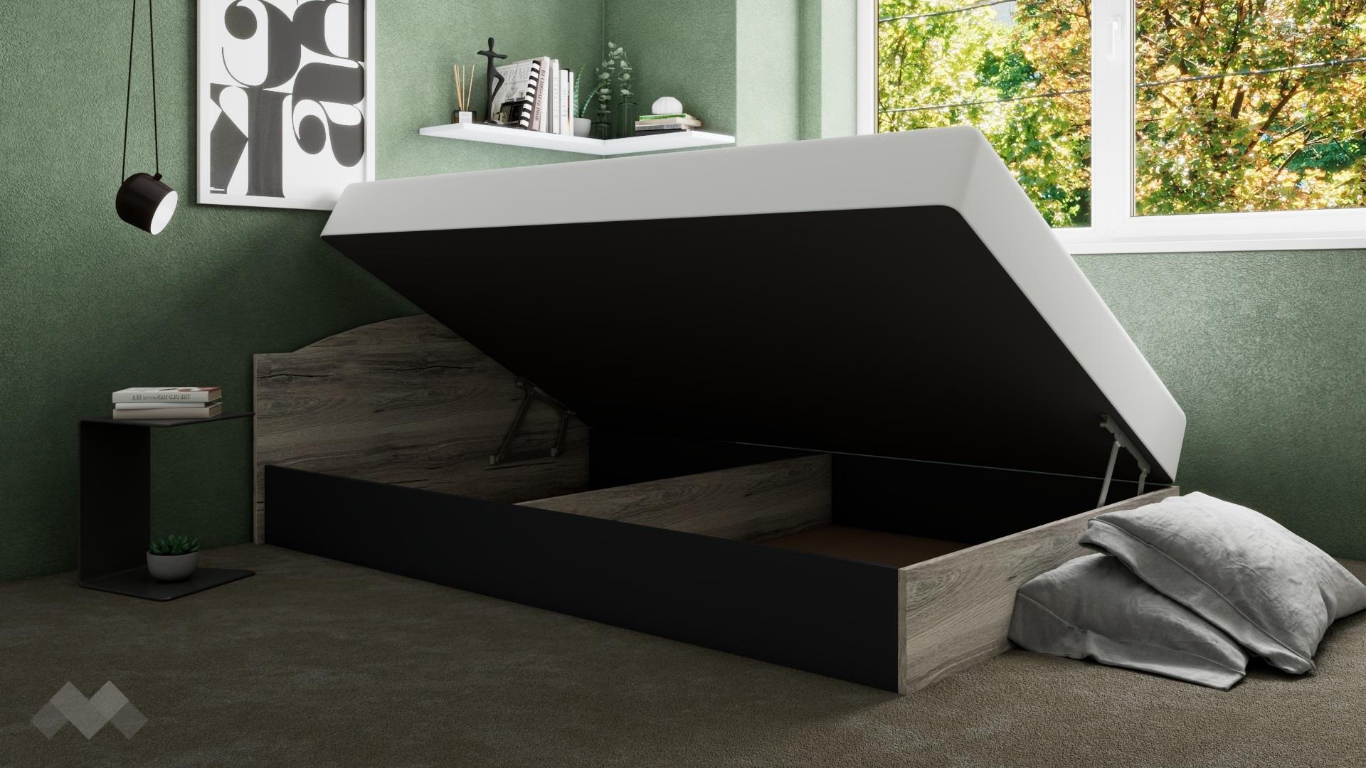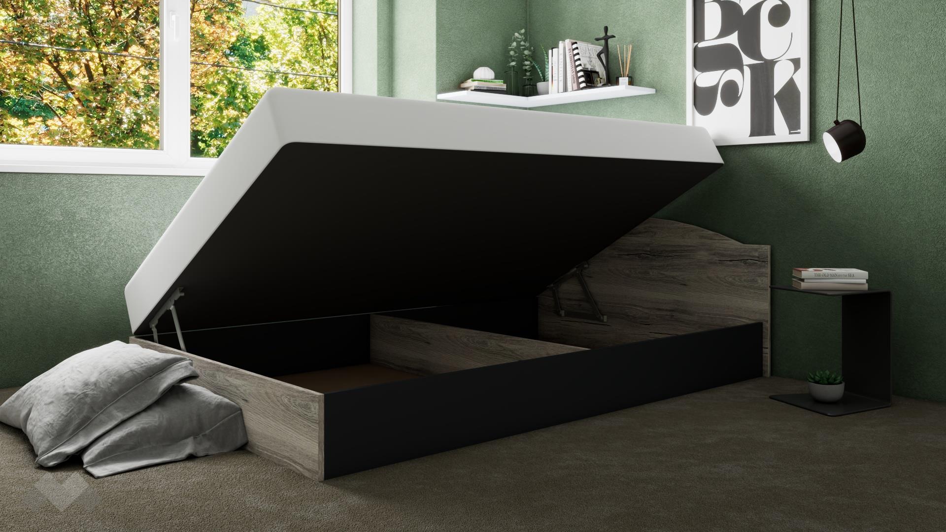 Благодарение на включеният в комплекта повдигащ пружинен механизъм, под матрака се открива широко пространство, готово да побере всички възглавници и завивки, на които все не се намира място, а допълнителният делител на подматрачното пространство прави организацията на съхраняваните вещи още по-лесна.