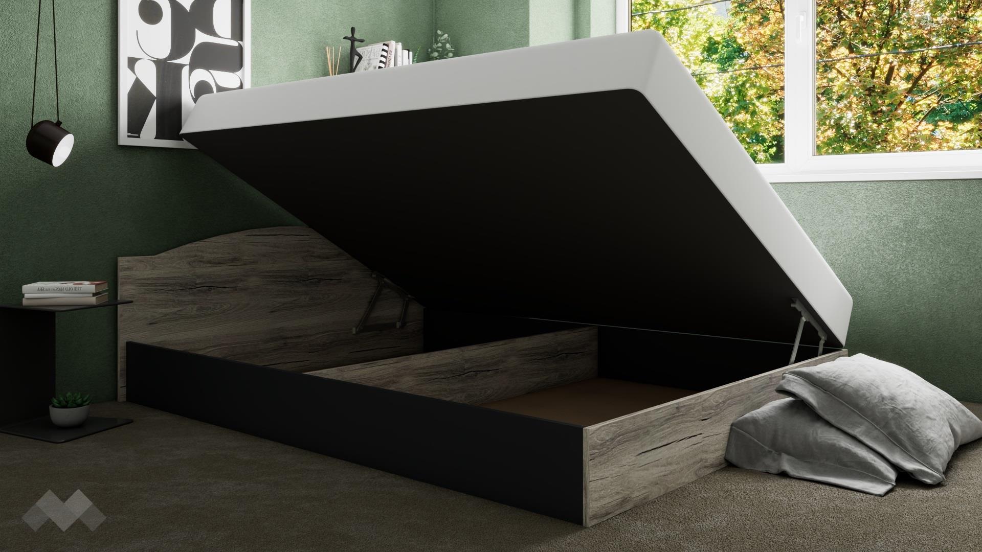 Благодарение на включеният в комплекта повдигащ пружинен механизъм, под матрака се открива широко пространство, готово да побере всички възглавници и завивки, на които все не се намира място, а допълнителният делител на подматрачното пространство прави организацията на съхраняваните вещи още по-лесна.