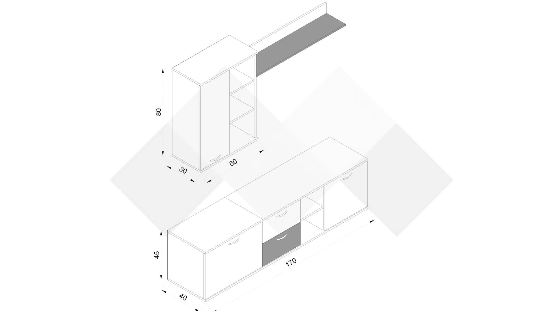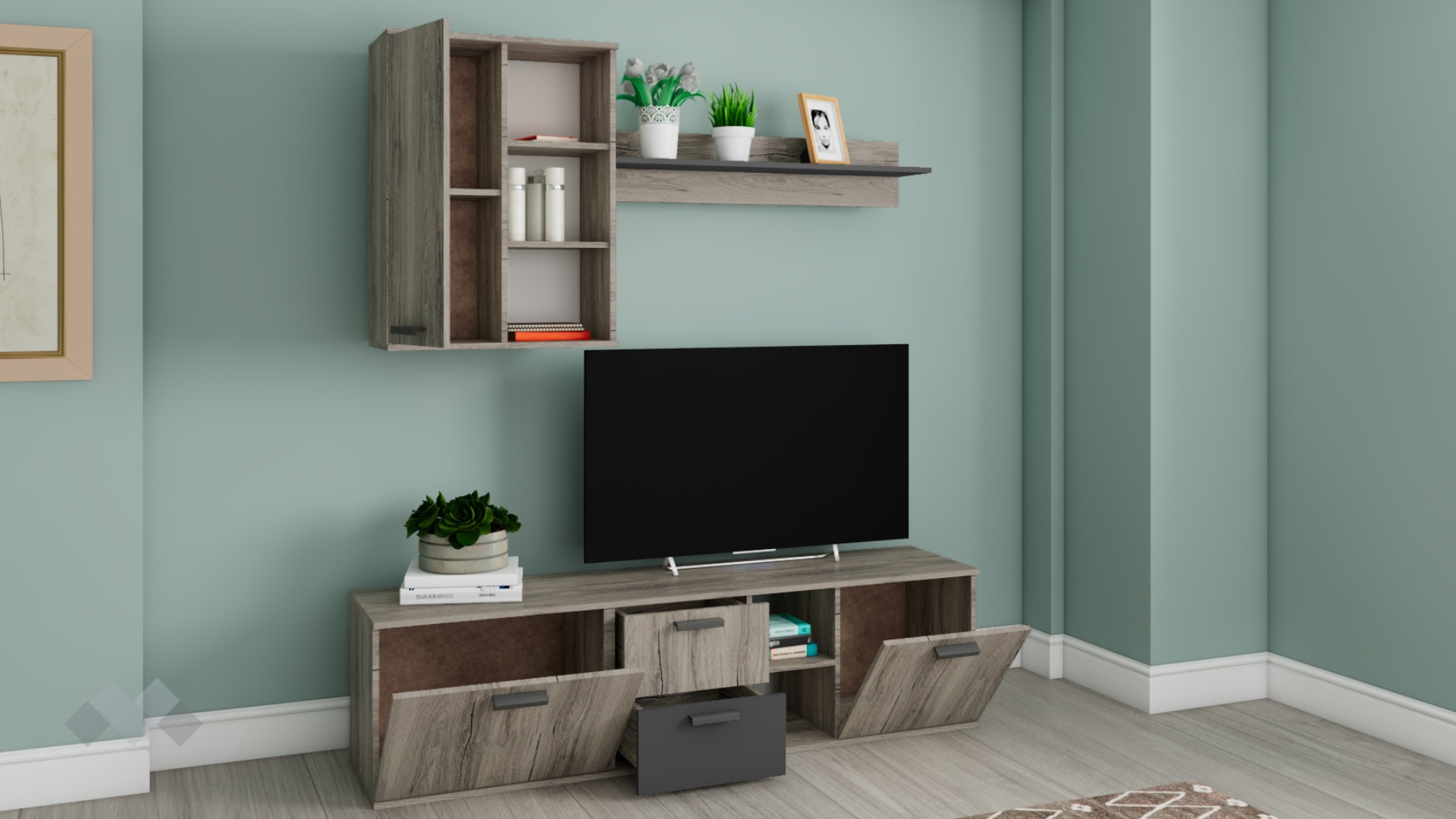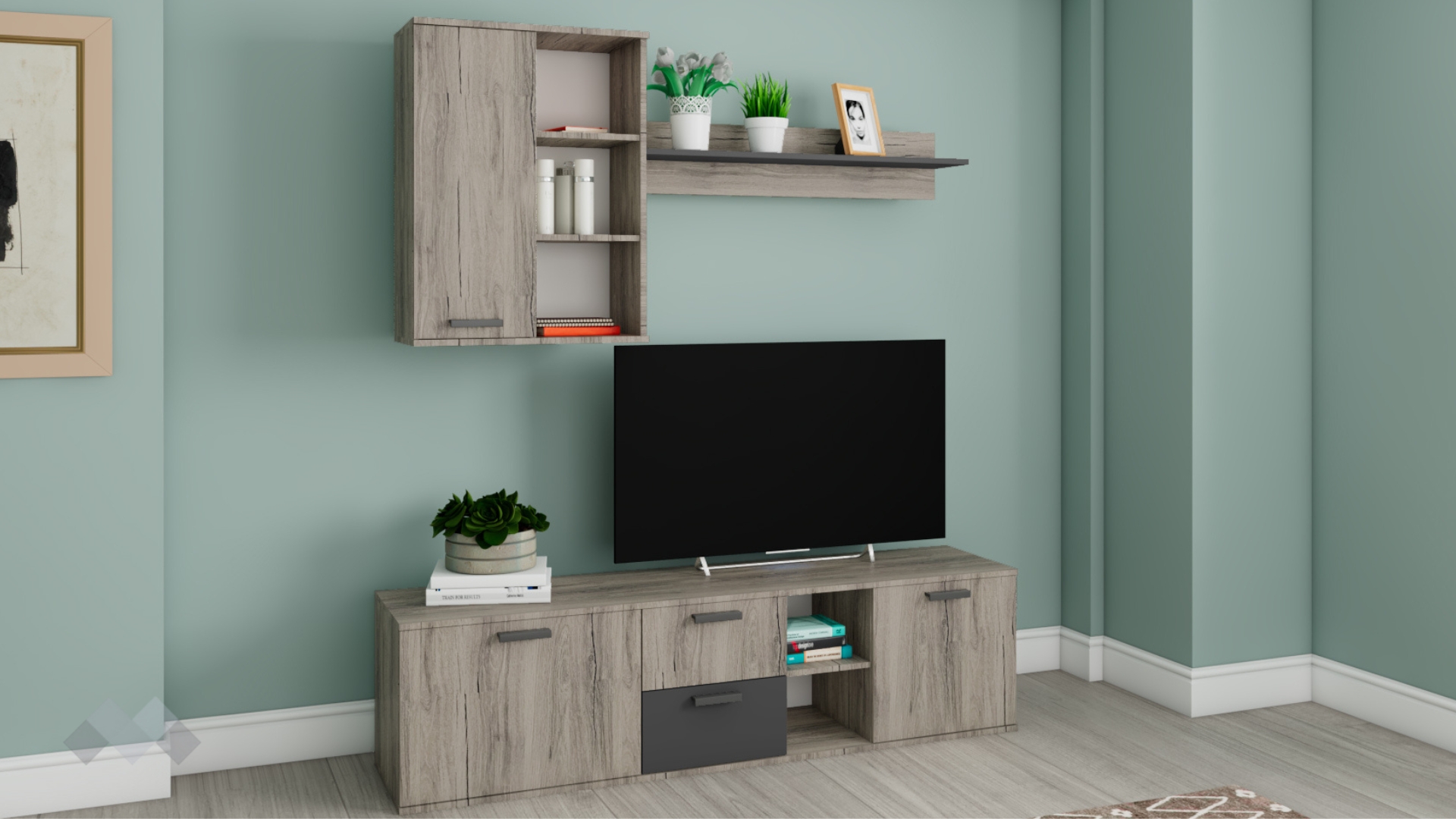 Ако държиш на стилните и практични мебели, секция Спирит ще те впечатли. Декорът е неутрален, с усещане за естествени дървесни нишки във винтидж стил. Съчетава се добре, както с цветове в сивата, така и с цветове в кафявата гама. Нейната красота се допълва от функционалността на 5 шкафа за съхранение, 3 отворени рафта и етажерка. Раздвижената ѝ структура ще спомогне за максимално добро усвояване на пространството във всекидневната и начин, с който да покажеш своя стил.