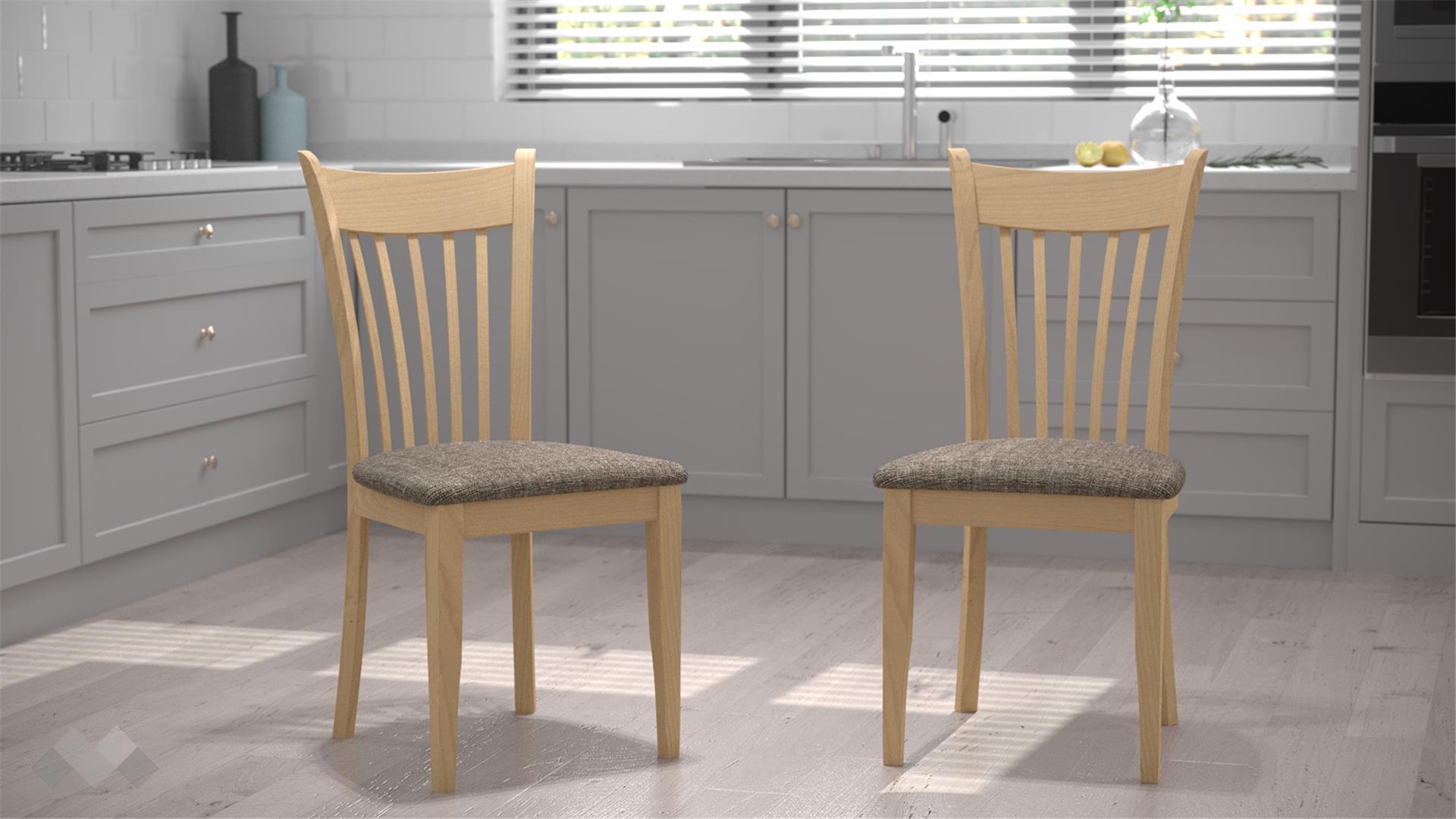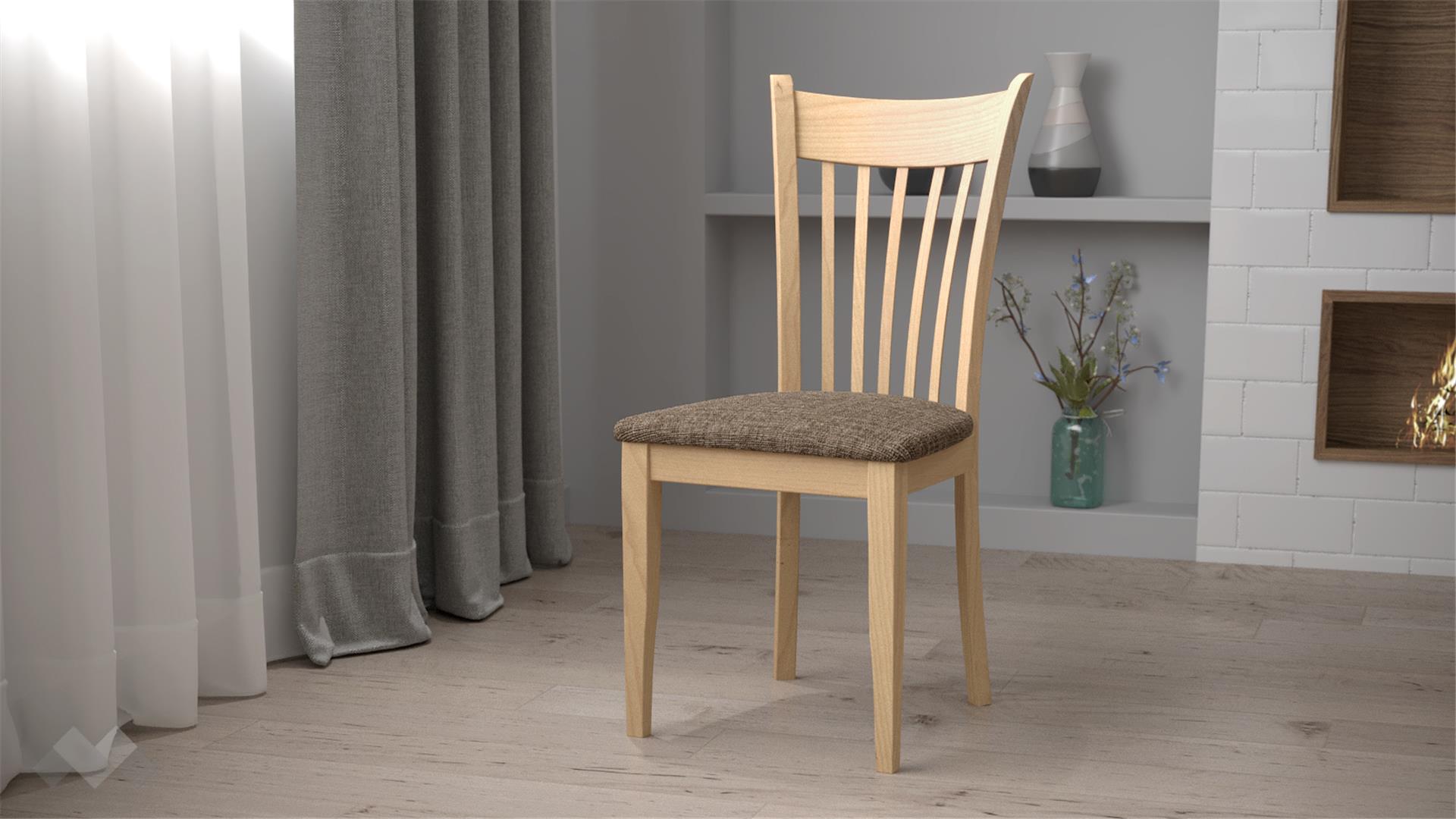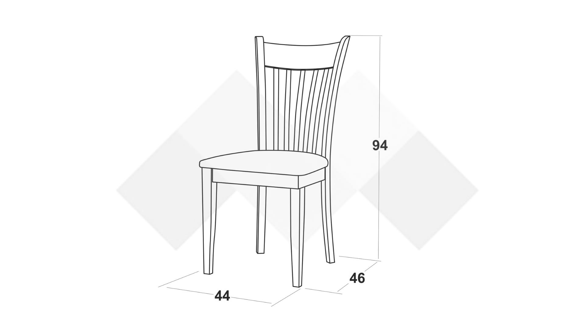 Столът е със здрава конструкция от естествена букова дървесина за устойчивост и стабилност, а лаковото покритие добавя елегантност. Седалката е проектирана с твърда основа, тапицирана с дунапрен за повече комфорт при седене и завършен със здрава текстилна дамаска, лесна за поддръжка.