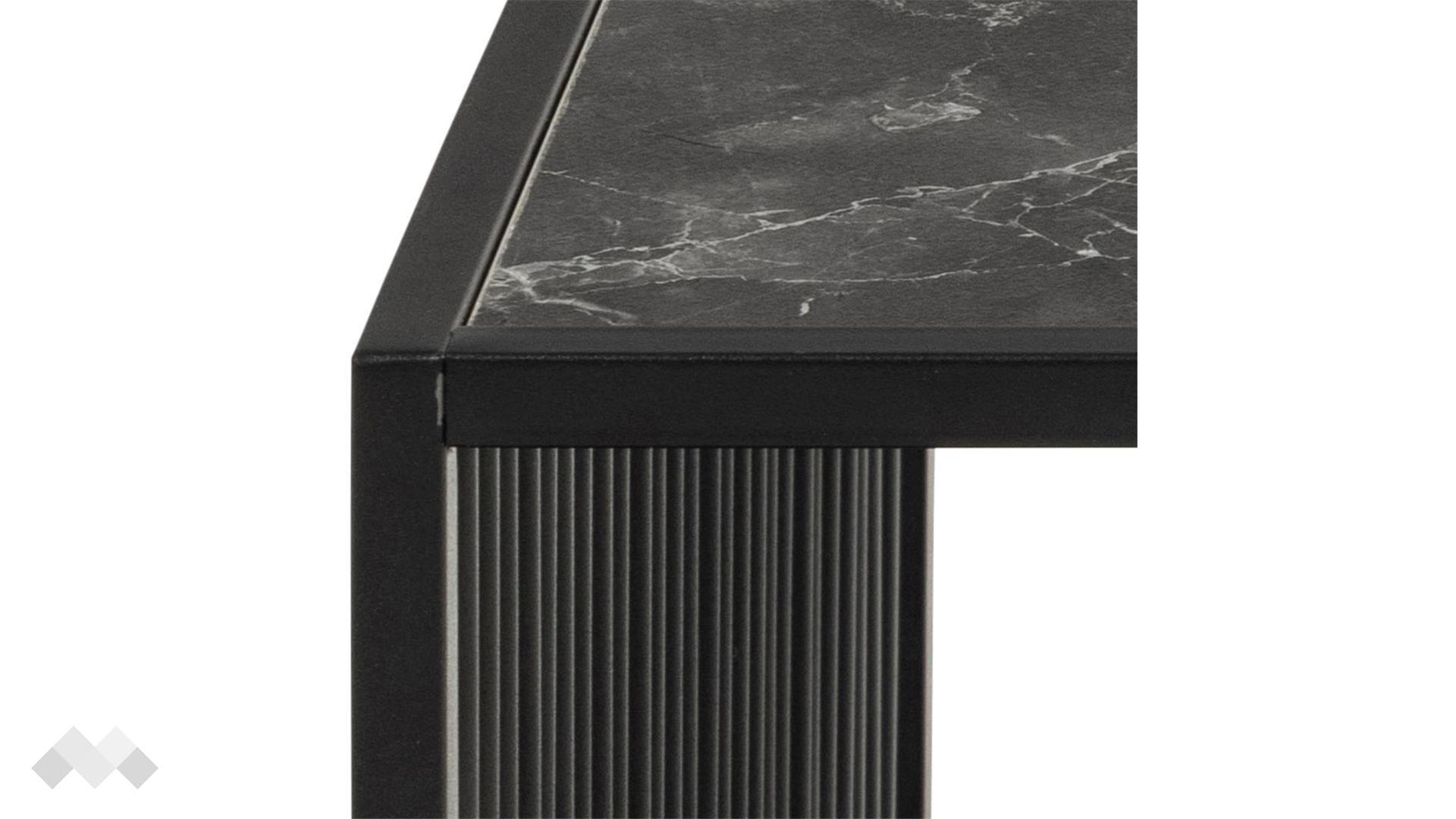 Най-забележителният детайл на тази маса са декоративните вертикални ламели, които добавят динамика и уникален визуален ефект. Те не само подчертават съвременния дизайн, но и придават усещане за лекота и простор в помещението.