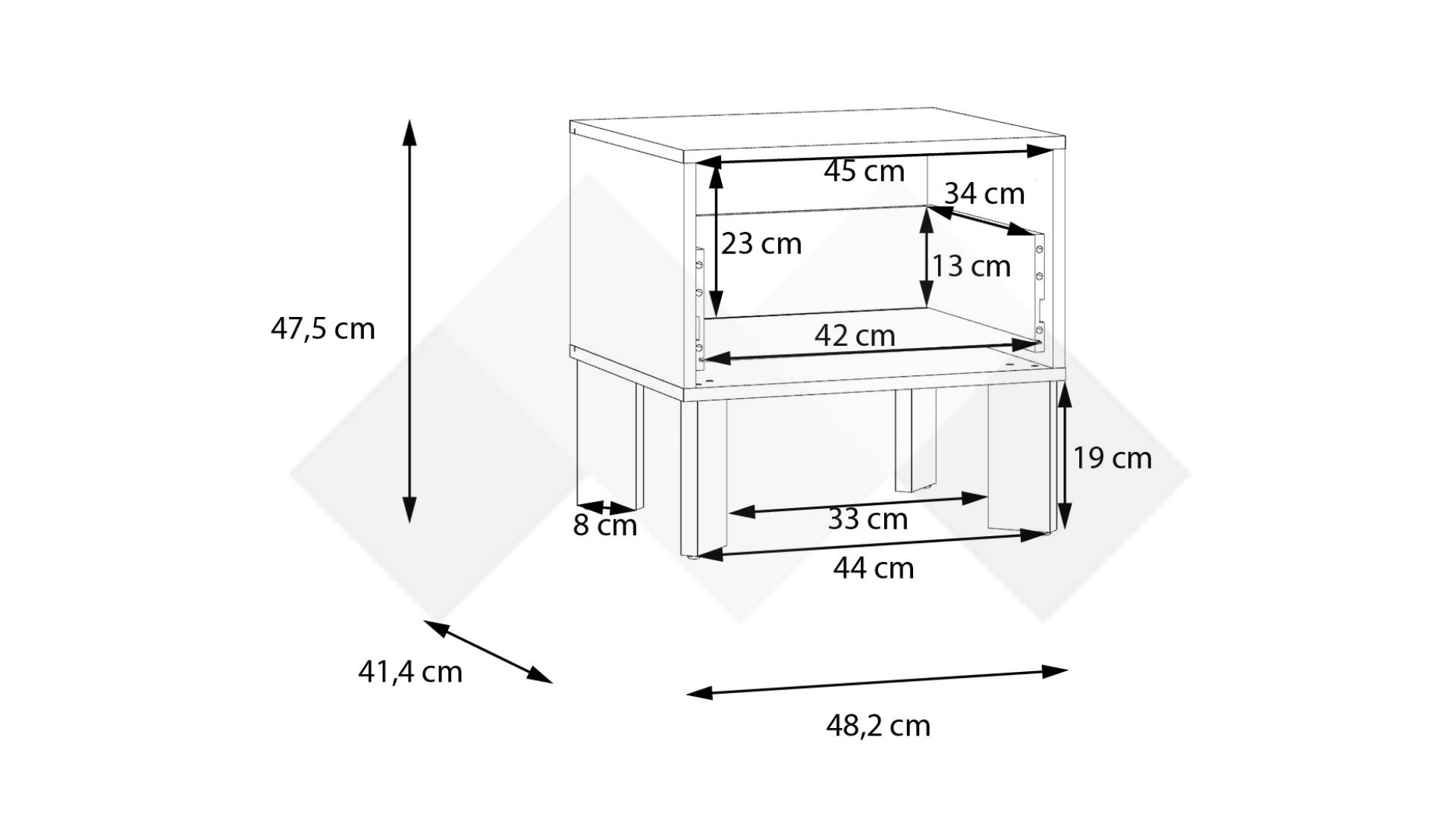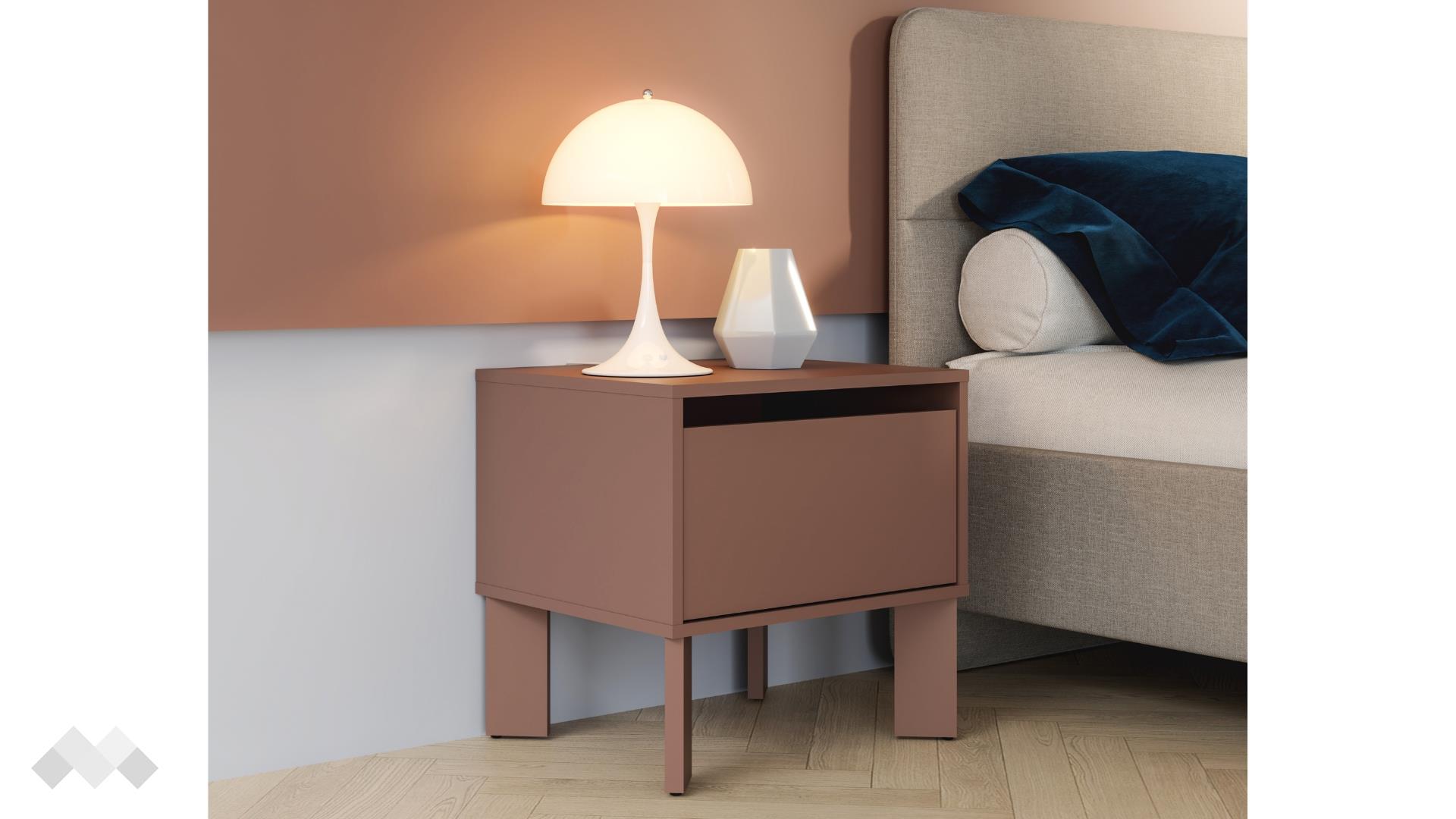Нощно шкафче Тахо е стилно и функционално допълнение към всяка спалня. Със своя изчистен дизайн и компактни размери, то се вписва лесно до всяко легло, осигурявайки удобно място за най-необходимите вещи.