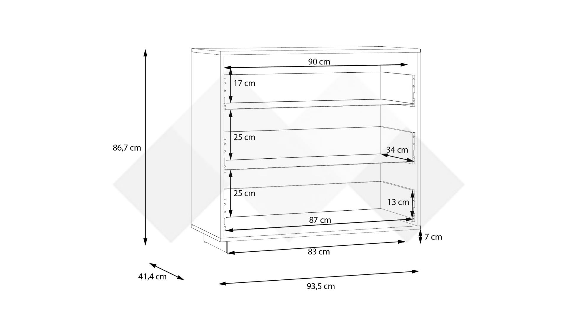 Дизайнът е модерен и изчистен, което позволява на скрина да се впише хармонично във всеки интериор – спалня, коридор или дневна. Благодарение на компактните си размери, той е едновременно функционален и елегантен акцент във вашия дом.
