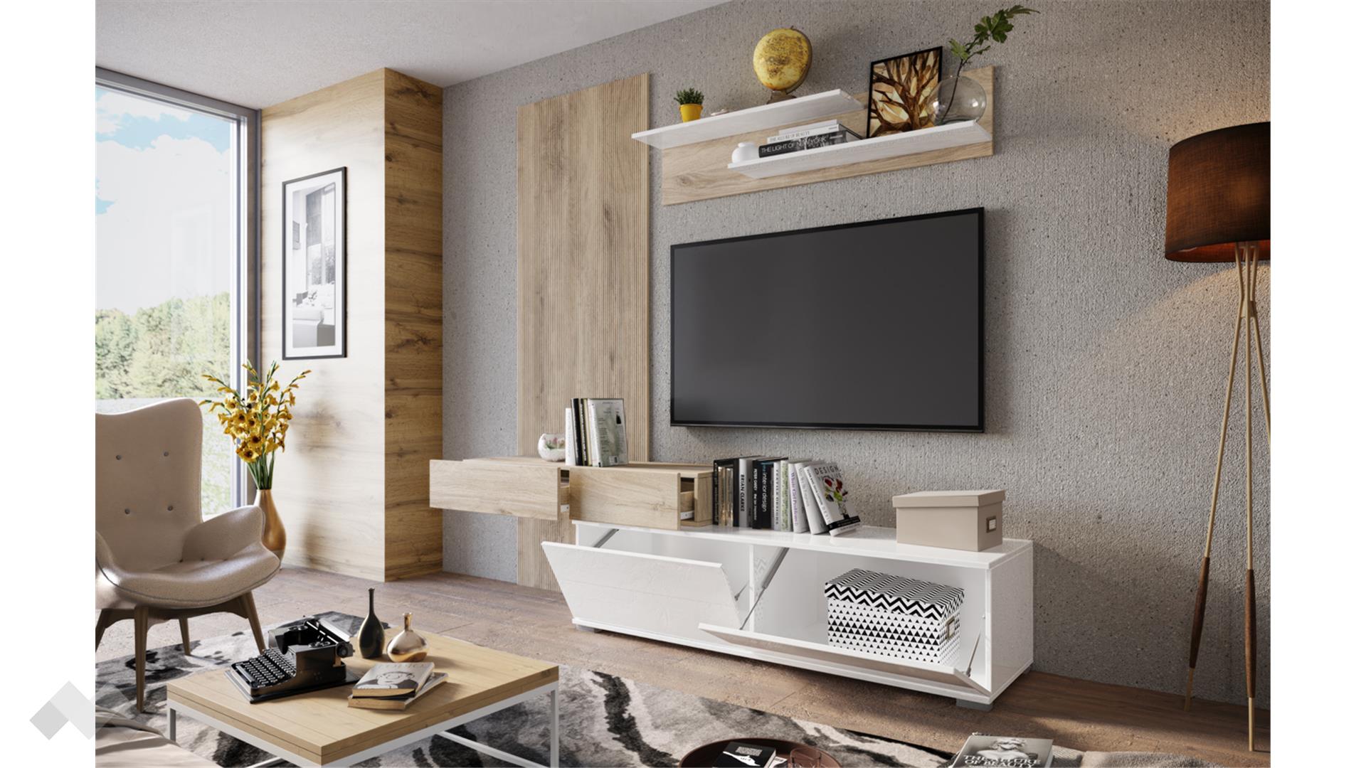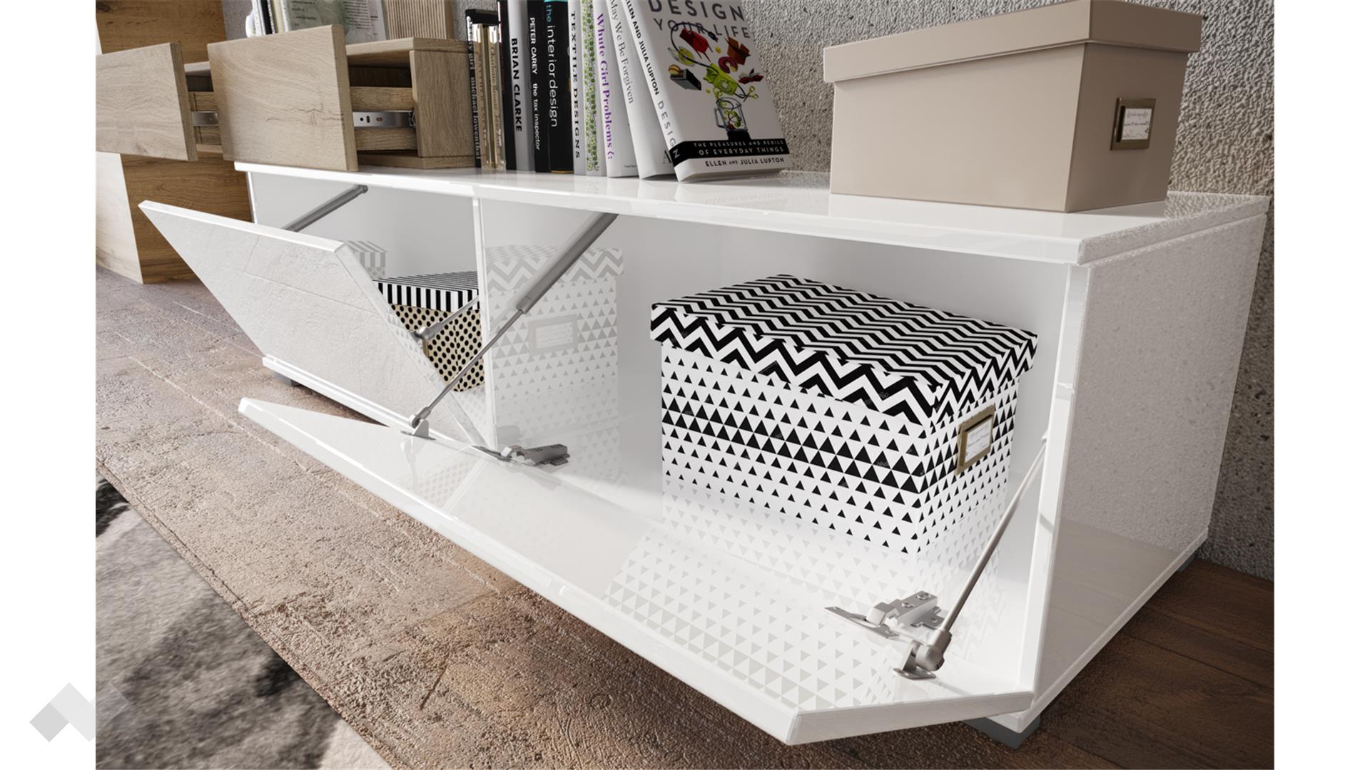 Моделът разполага с две чекмеджета с пълно изтегляне и плавно затваряне и два шкафа, снабдени с пуш бутони и падащи вратички. Там можеш да съхраняваш всяка вещ, от която модерният хол се нуждае.
