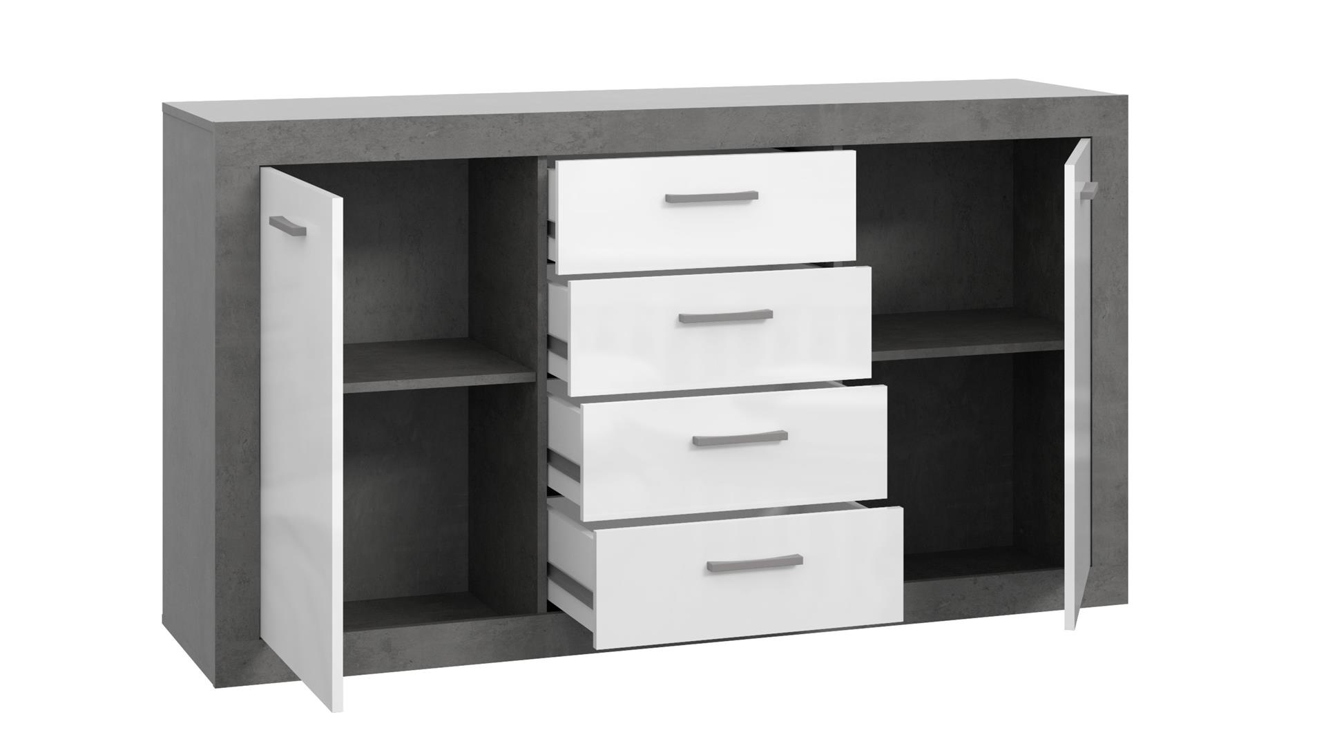 ⭐ Предимства: ✓ 4 чекмеджета ✓ 2 затворен шкафа ✓ функционално място за съхранение ✓ телескопични водачи ✓ практично разпределение ✓ елегантен дизайн ✓ модерен декор ✓ висококачествена изработка ✓ 15 мм ПДЧ