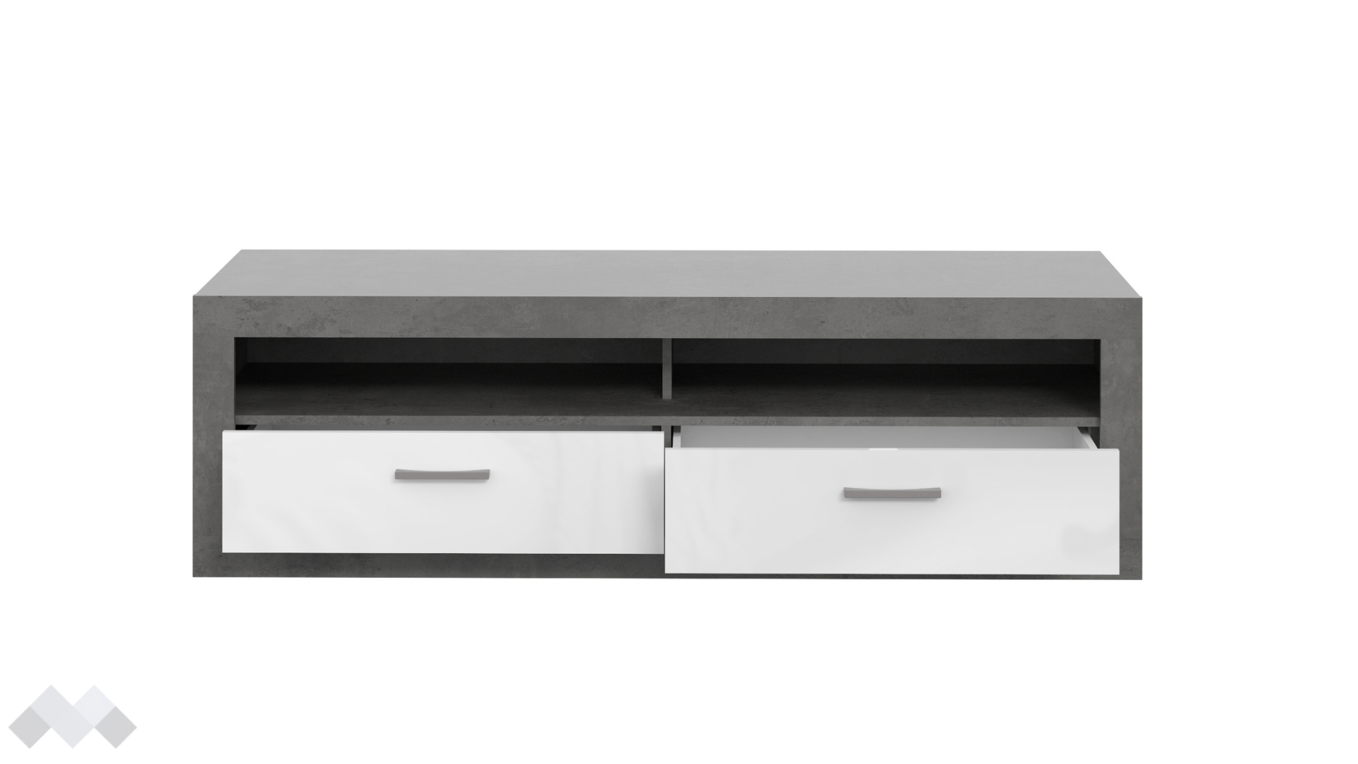 ТВ шкаф Требия е практична мебел, която разполага с 2 отворени рафта, на които можеш да поставиш декодери, конзоли и друга съпътстваща техника към своя телевизор. В допълнение, шкафът включва 2 чекмеджета с телескопични водачи, които осигуряват плавно отваряне и затваряне. Телескопичните водачи предлагат допълнителна устойчивост и стабилност, което прави чекмеджетата надеждни при ежедневна употреба.