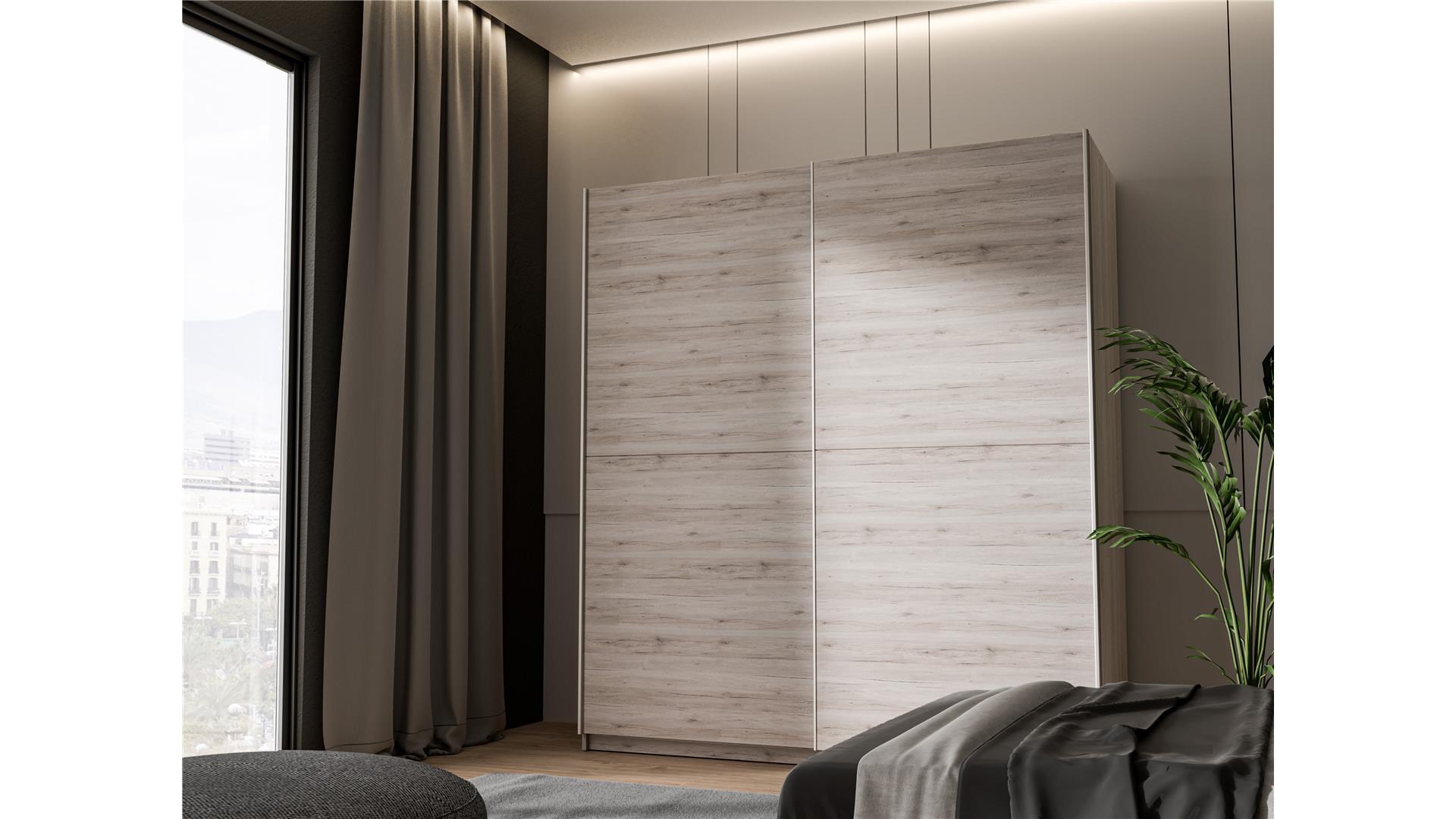 Изработен от 15 мм ПДЧ, гардеробът се отличава със стабилна конструкция и изчистен модерен силует, който се комбинира лесно с различни стилове мебели.