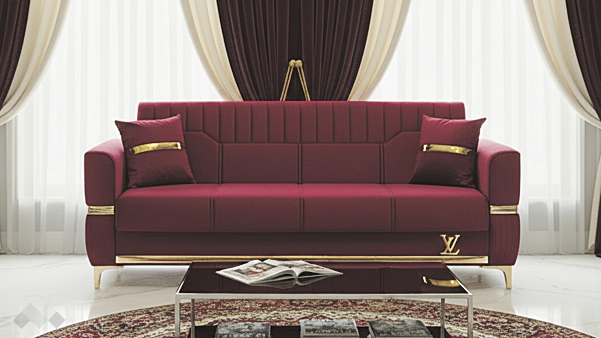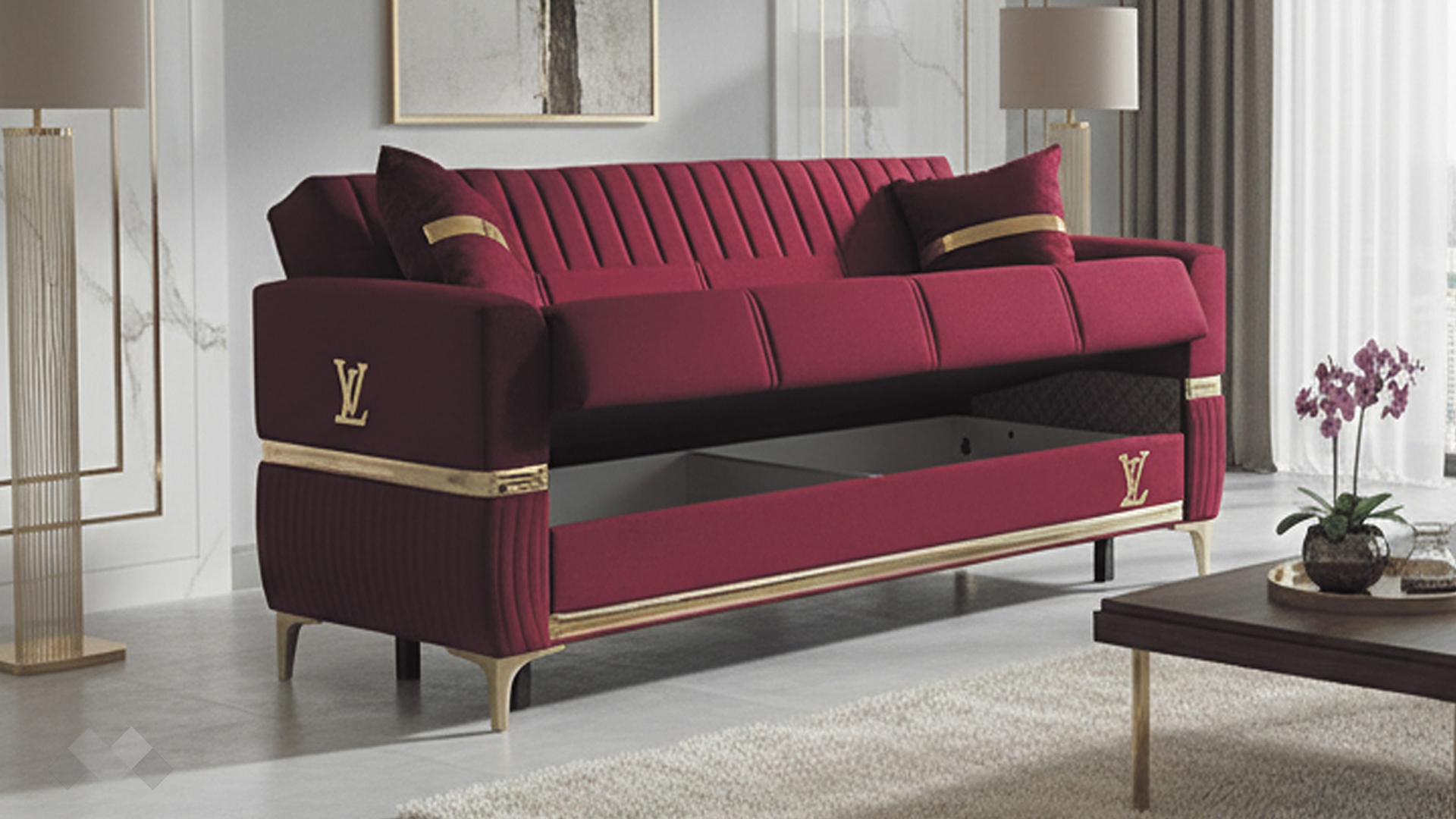 Елегантният диван Верино впечатлява с луксозен дизайн и изключително внимание към детайла. Моделът комбинира топли цветове с изящни златиснти акценти, които му придават премиум излъчване и създават усещане за класa и елегантност.