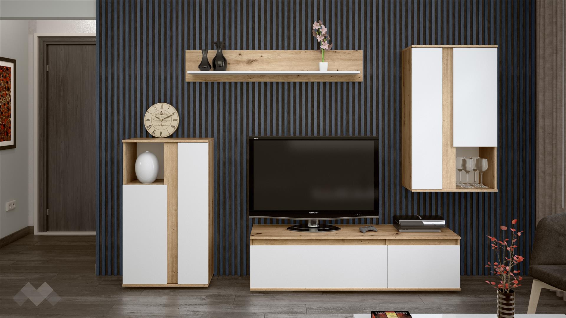 ⭐ Предимства: ✓ 2 отворени рафта ✓ ТВ шкаф ✓ 2 високи шкафа ✓ етажерка ✓ модерен дизайн ✓ функционална и практична ✓ качествена изработка ✓ 16 мм ПДЧ